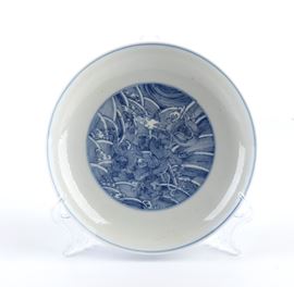 Piatto in porcellana bianca e blu con drago entro riserva, Cina, dinastia Qing, periodo Qianlong (1736-1795)
