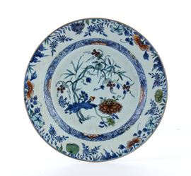 Piatto in porcellana policroma, Cina, dinastia Qing, XVIII secolo