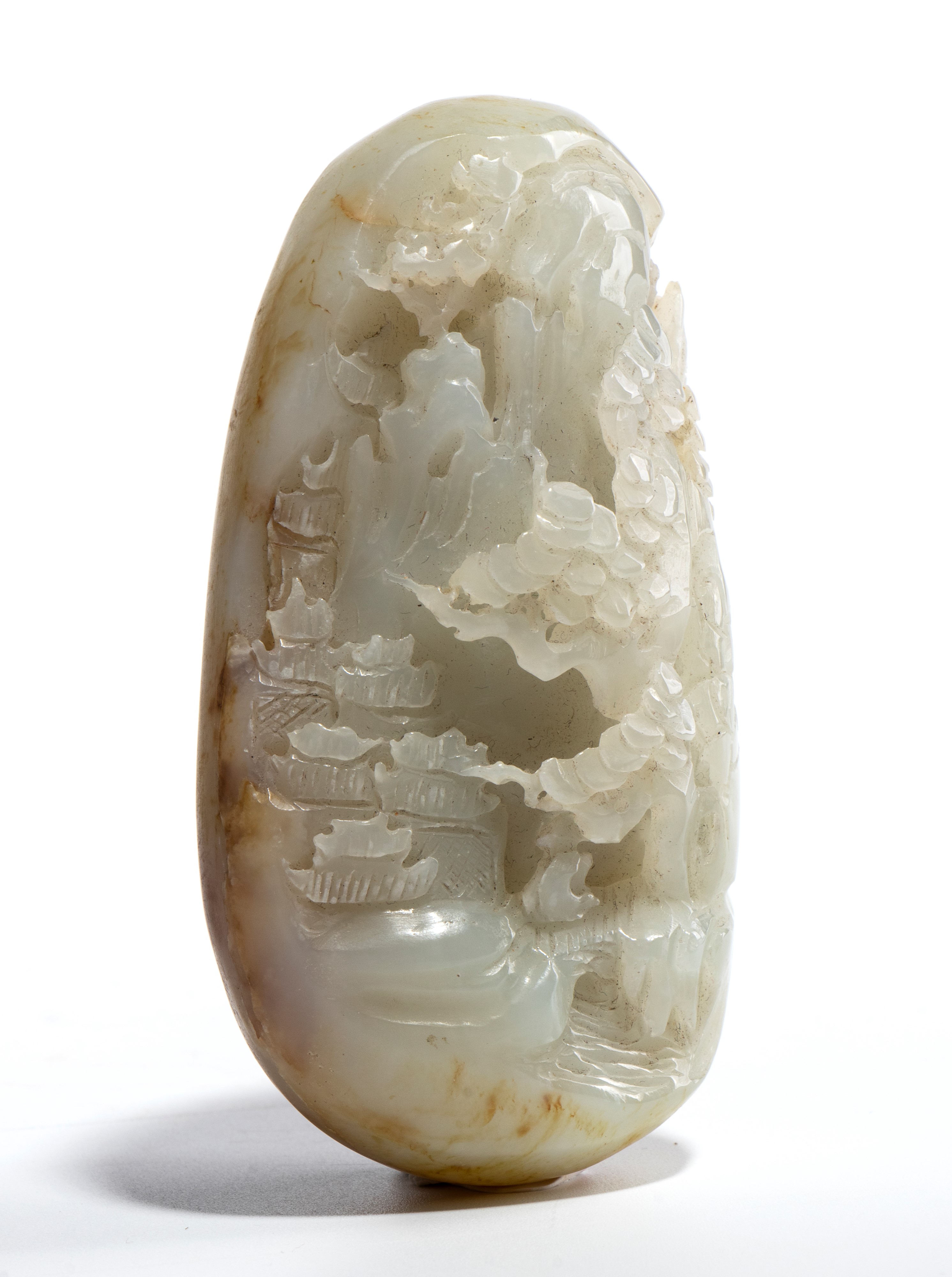 Raffinato intaglio in giada bianca, Cina, dinastia Qing, XIX secolo