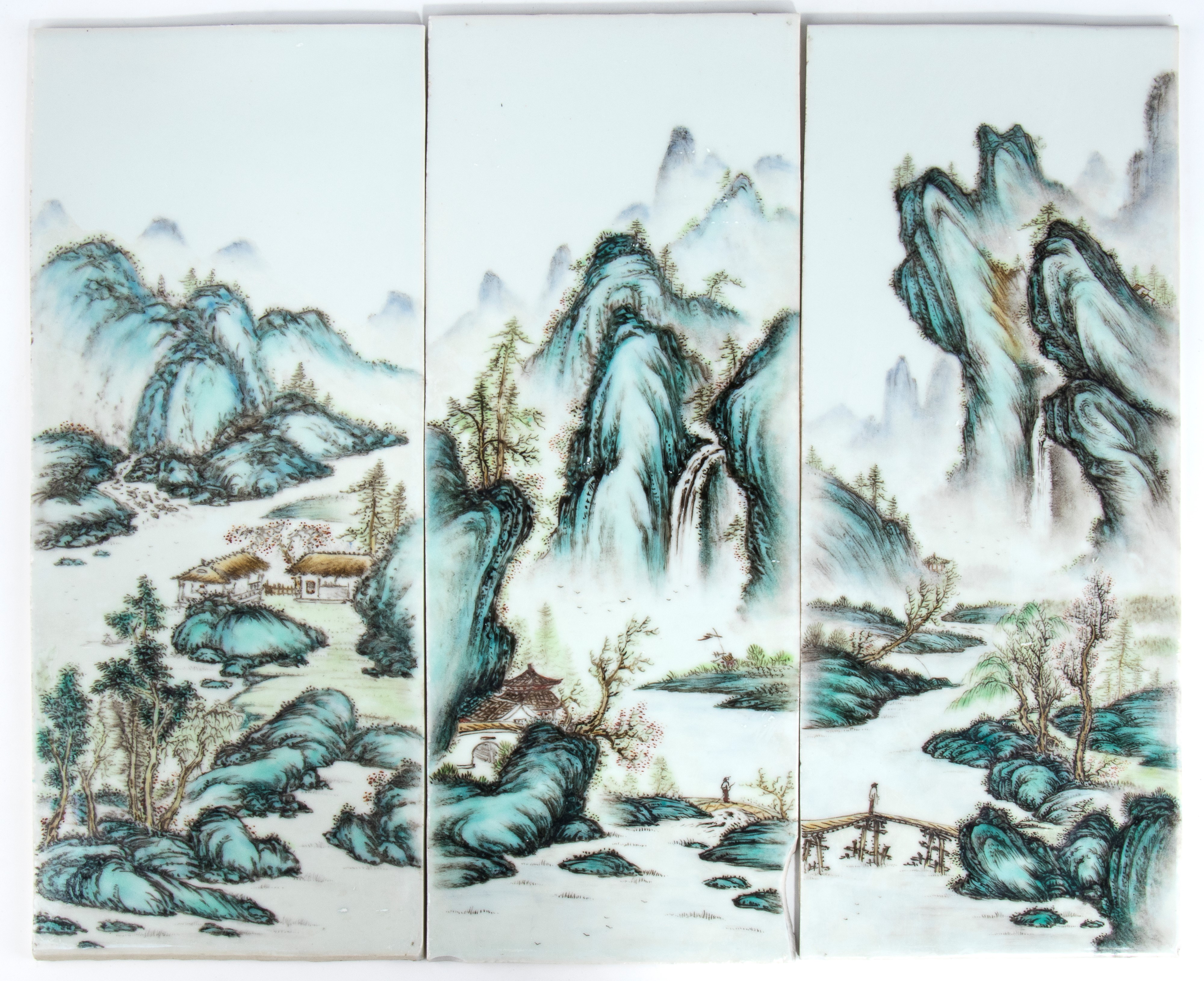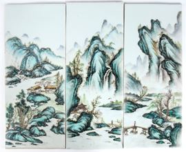 Raffinato set di formelle in porcellana ( 3 pezzi), Cina, Periodo Repubblica (1912-1949)