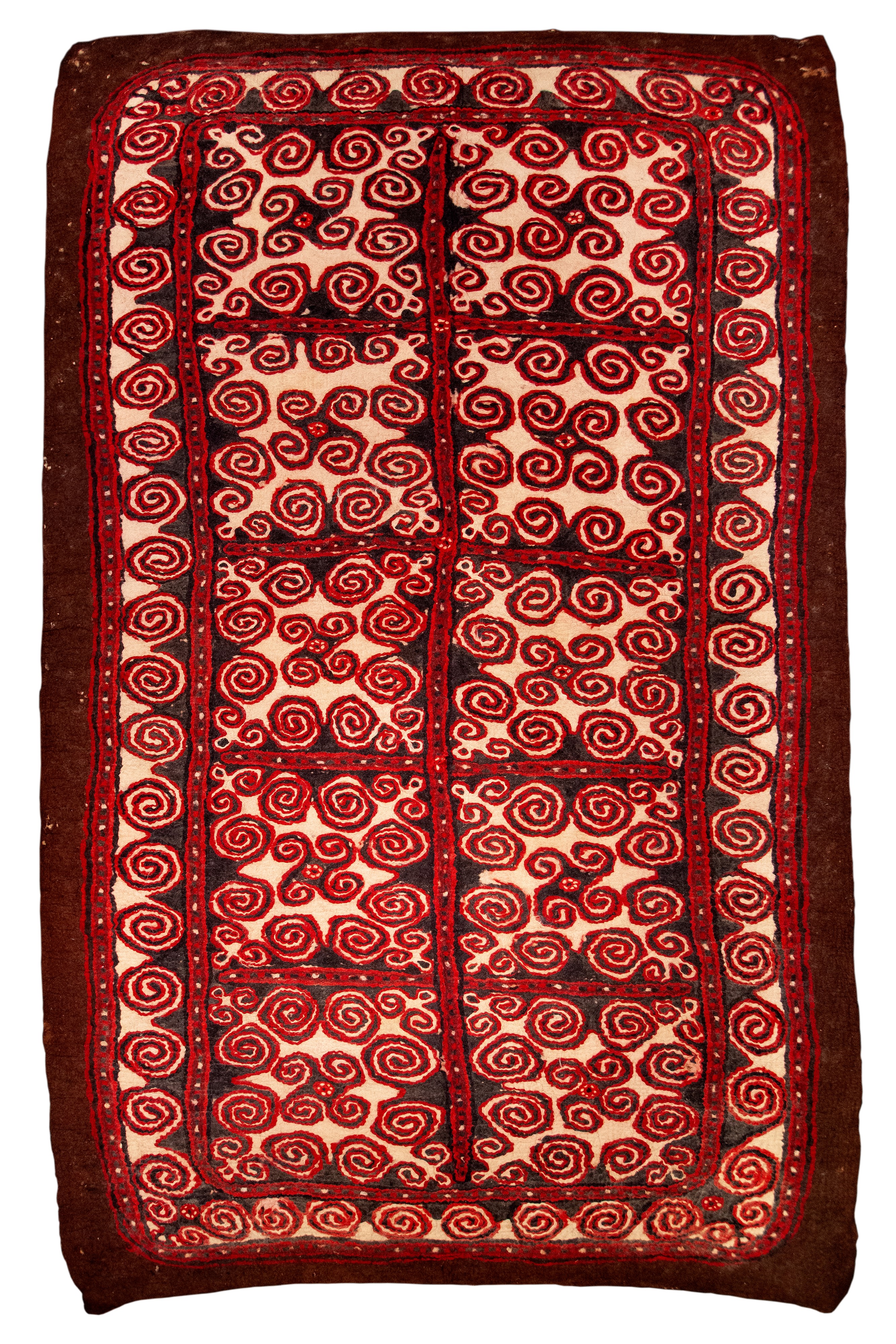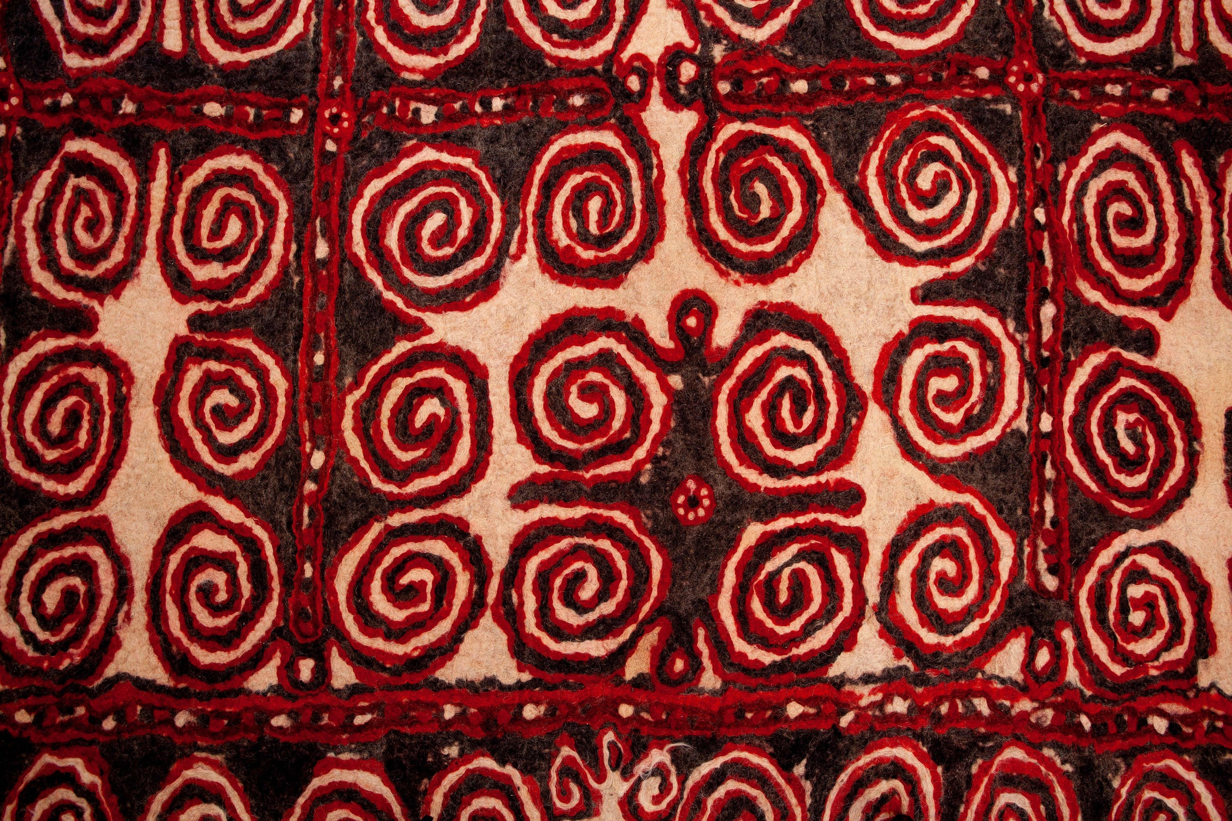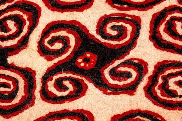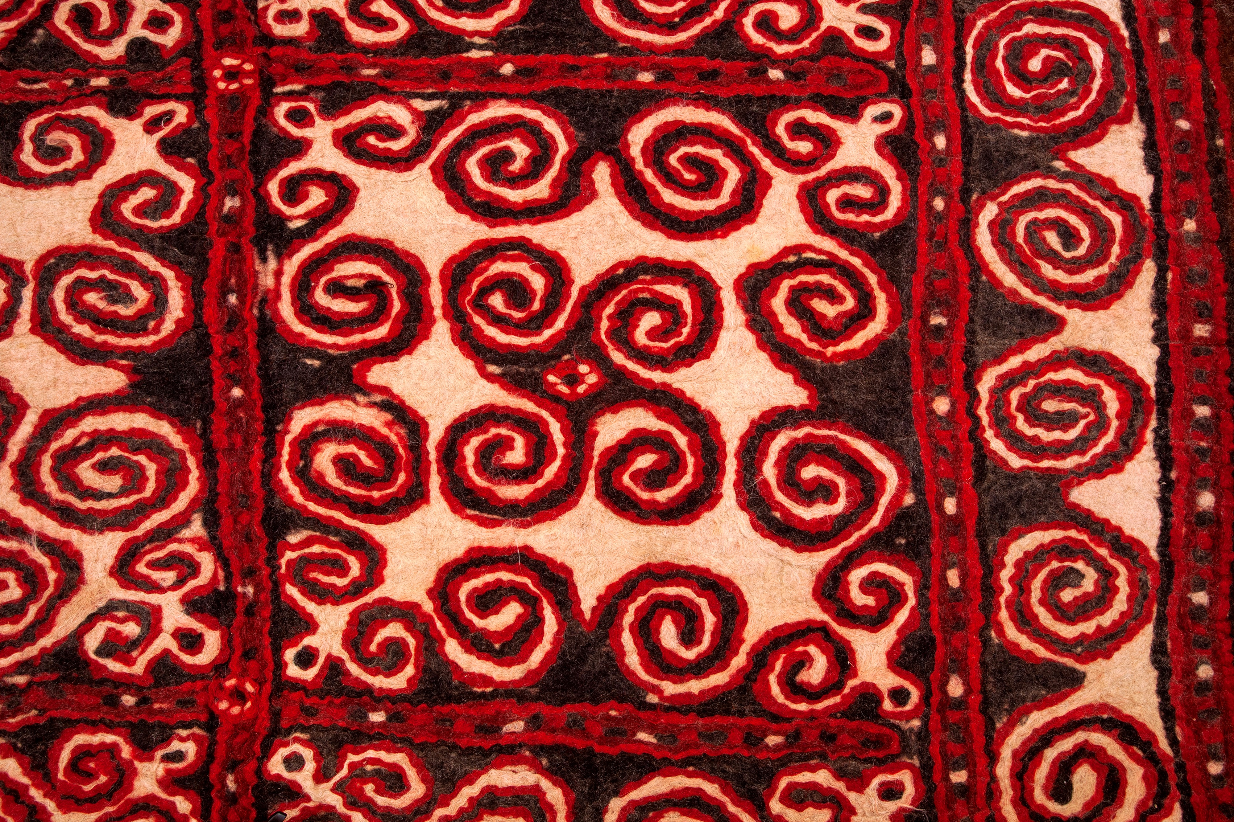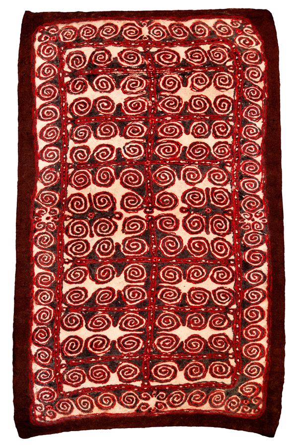 Raro feltro in lana pressato a mano con motivi a spirale.