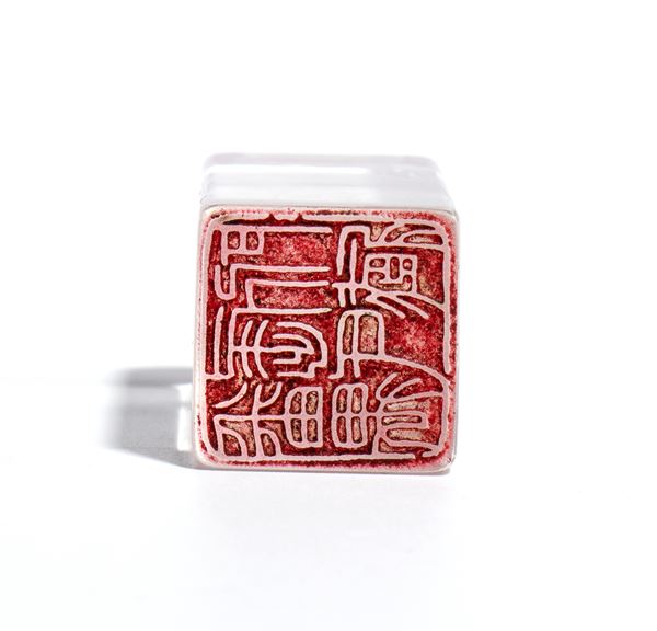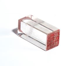Sigillo in cristallo con antichi caratteri cinese incisi.