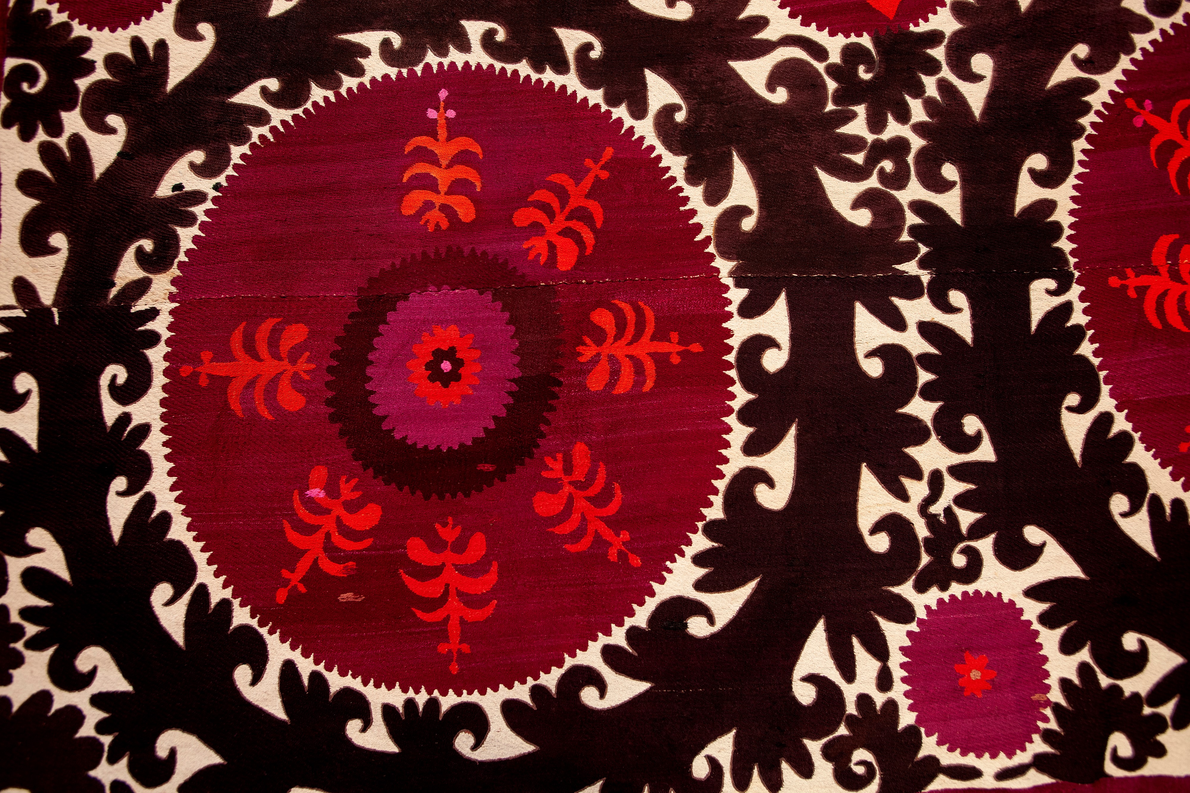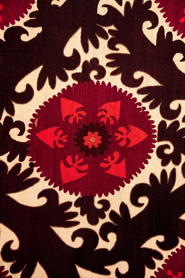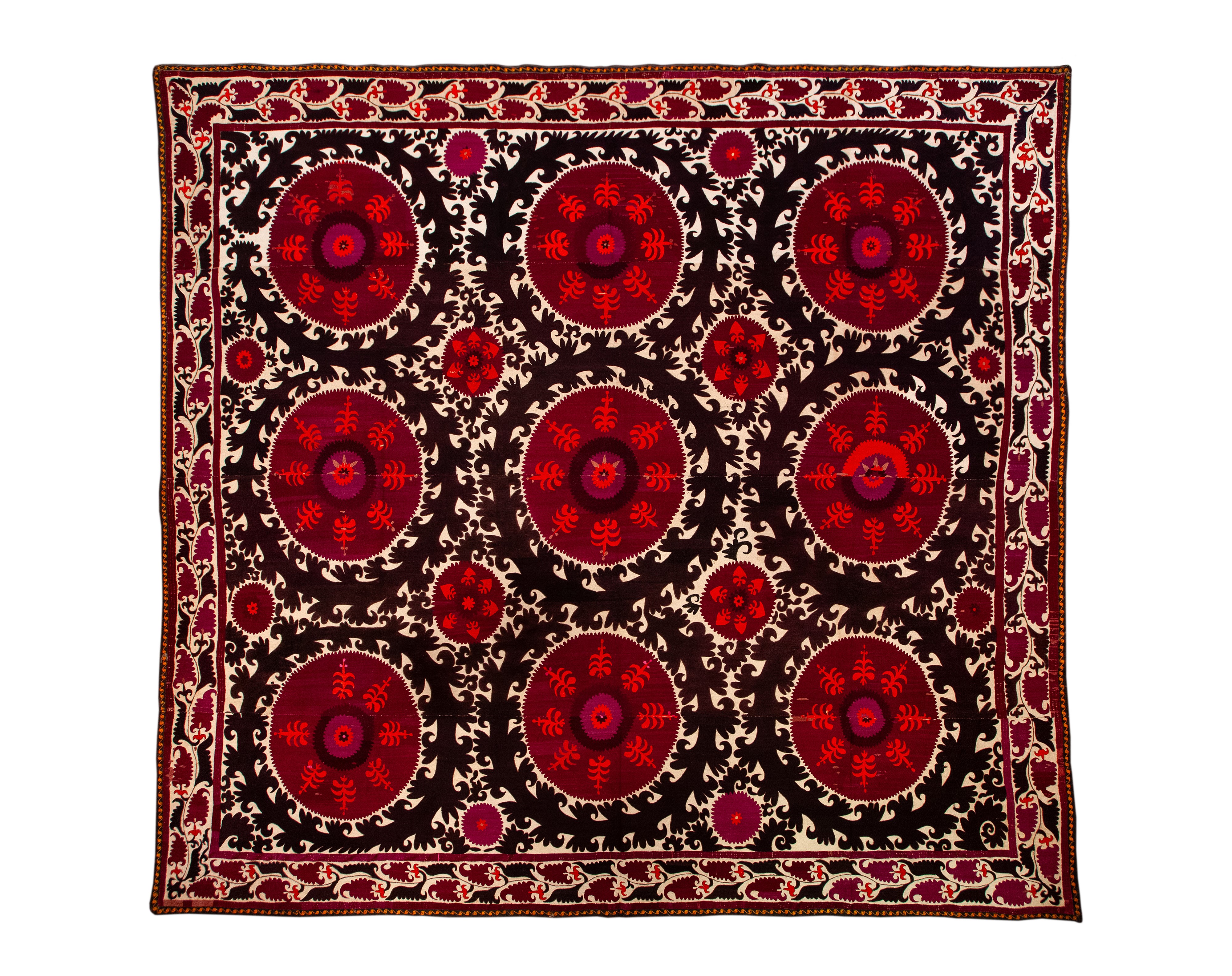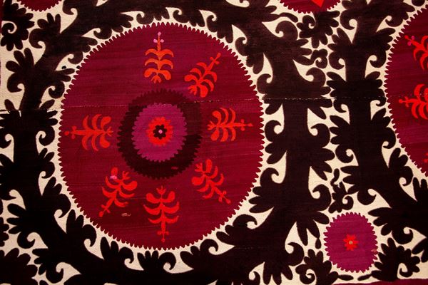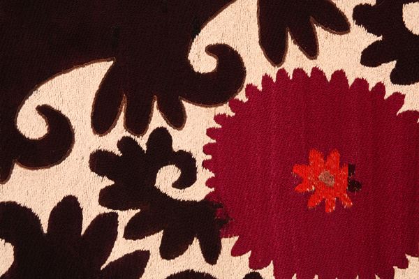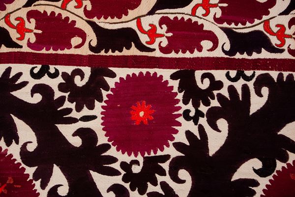 Suzani Samarcanda ricamato in seta su tela di lino.