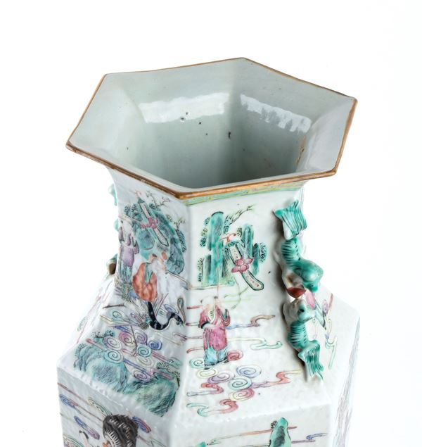 Vaso in porcellana famiglia verde, Cina, dinastia Qing, XIX secolo