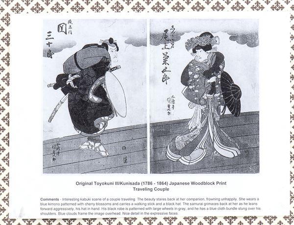 Xilografia di Toyokuni III Kunisada (1786-1964) raffigurante un viaggiatore.