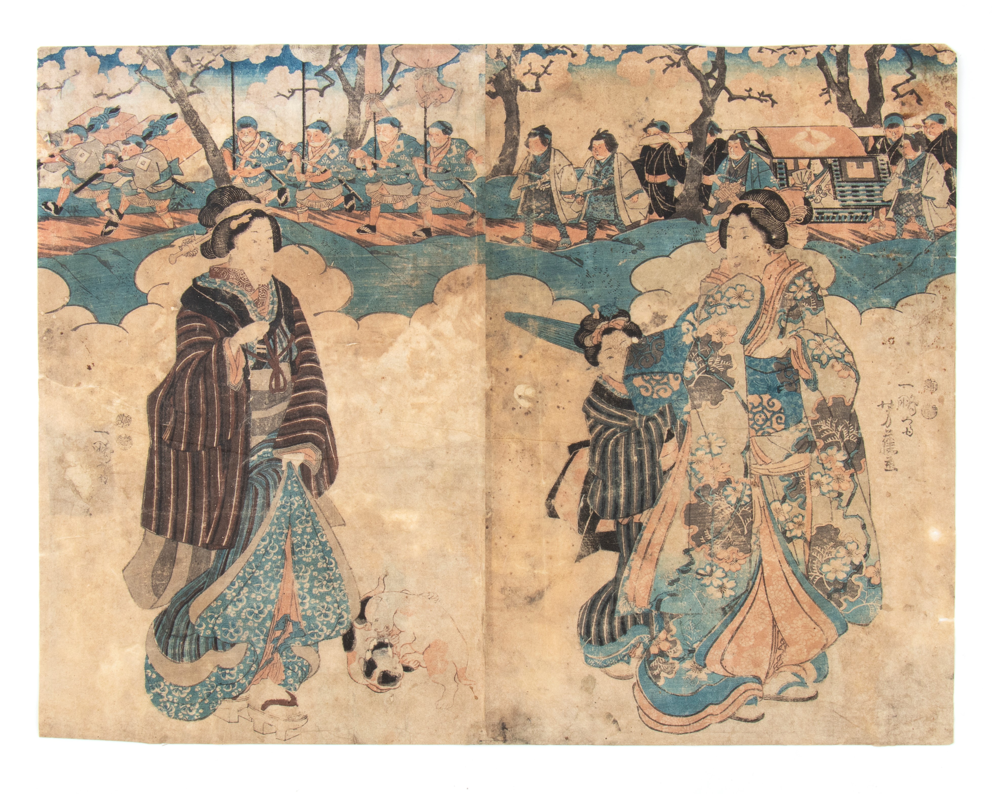 Xilografia di Utagawa Kunisada (1786-1864) raffigurante una scena della vita culturale urbana.