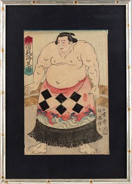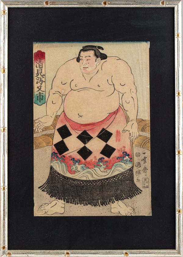 Xilografia probabilmente realizzata dall'artista Utagawa Kuniteru II raffigurante un lottatore di sumo.