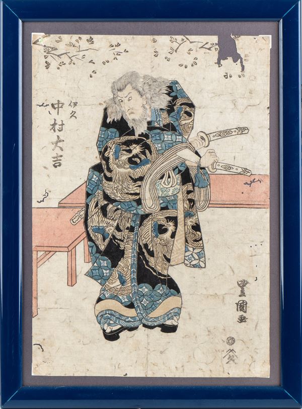 Xilografia di Utagawa Toyokuni raffigurante l'attore Nakamura Daikichi, come scritto nella descrizione verticale sulla sinistra della figura.