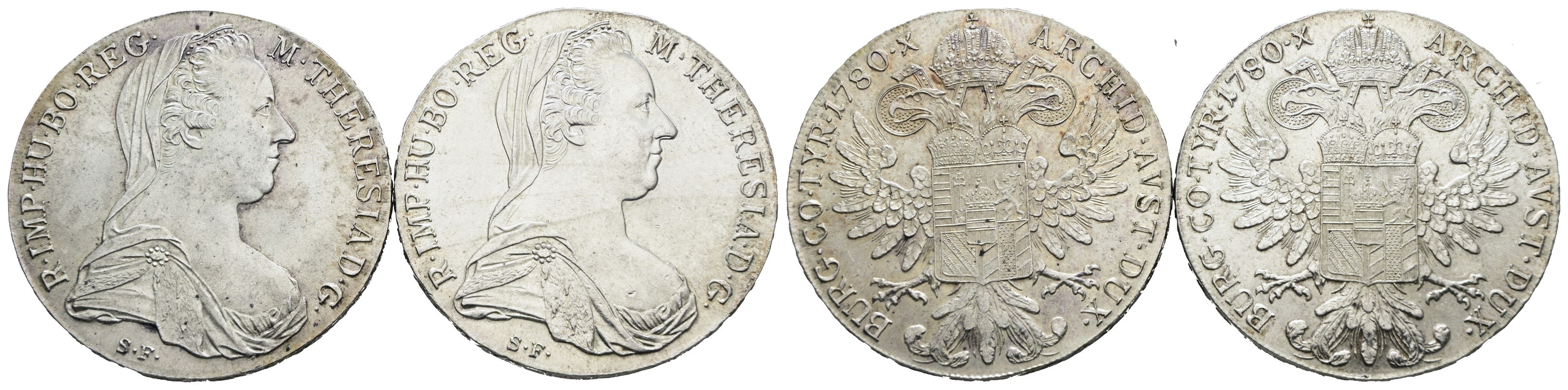 AUSTRIA. VIENNA. Lotto di 2 moneta da 1 tallero di Maria Teresa d'Austria 1780, XX secolo..Ag; Q.FDC