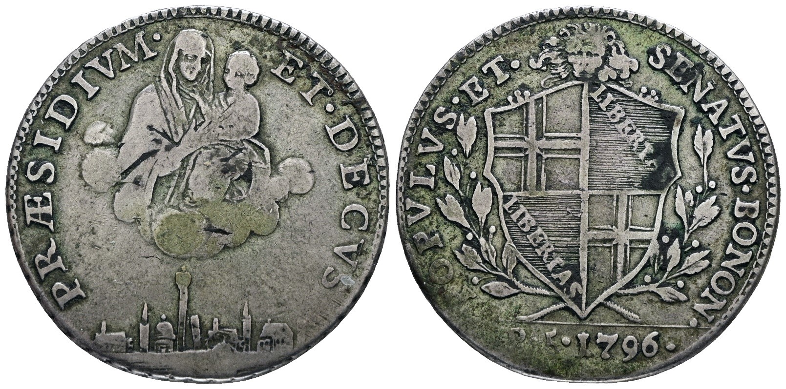 BOLOGNA. Governo Popolare (1796-1797). 5 paoli 1796. Ag; 14,5gr; Gig. 9; Raro; BB
