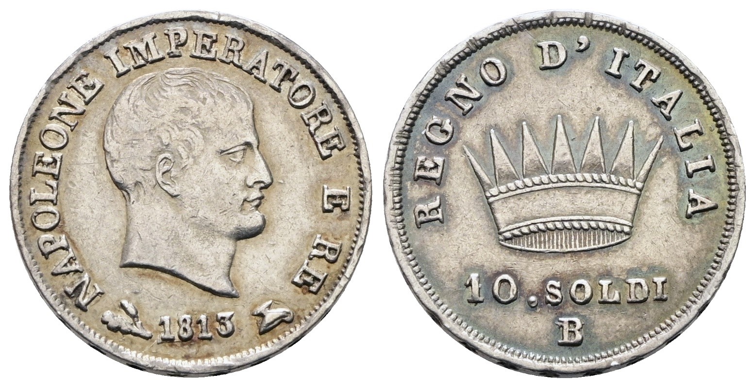 BOLOGNA. Regno d'Italia. Napoleone I (1805-1814). 10 soldi 1813. Ag; 2,5gr; Gig.183a; RRR; BB/SPL