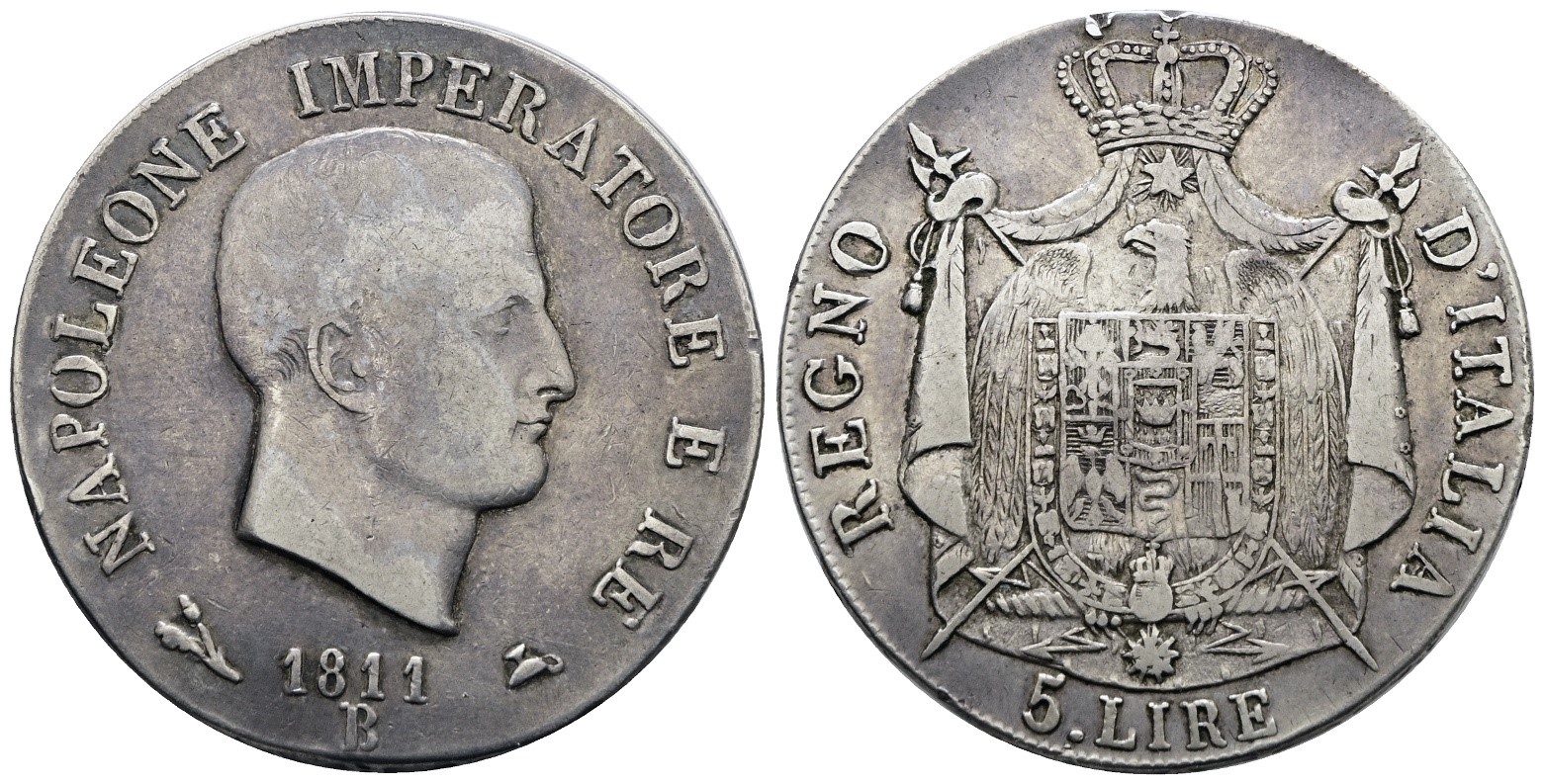 BOLOGNA. Regno d'Italia. Napoleone I (1805-1814). 5 lire 1810 I tipo. Ag; 25gr; Gig.102; Raro; BB