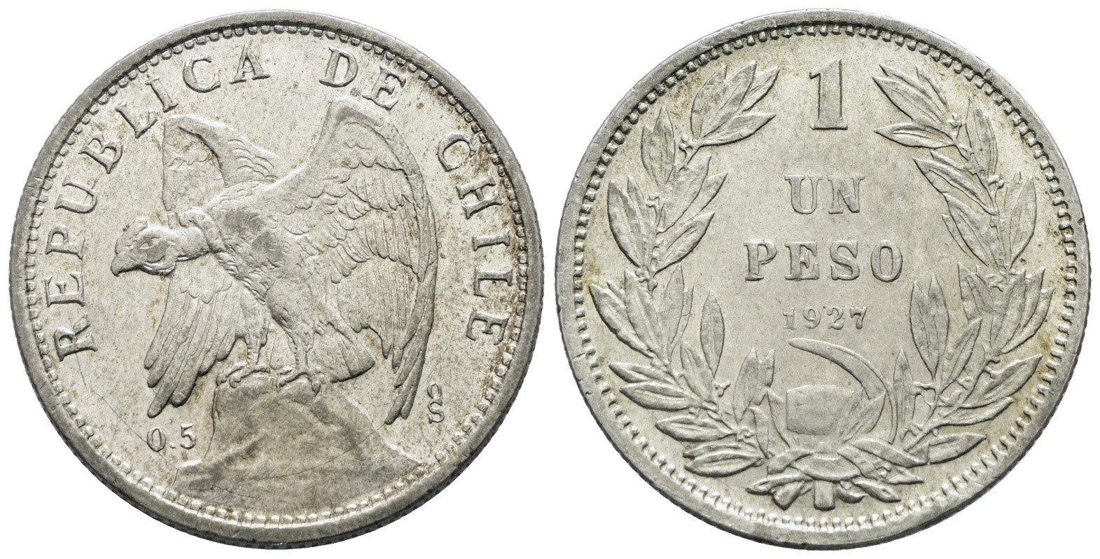 CILE. 1 peso 1927. Ag; 9gr; KM 171; SPL