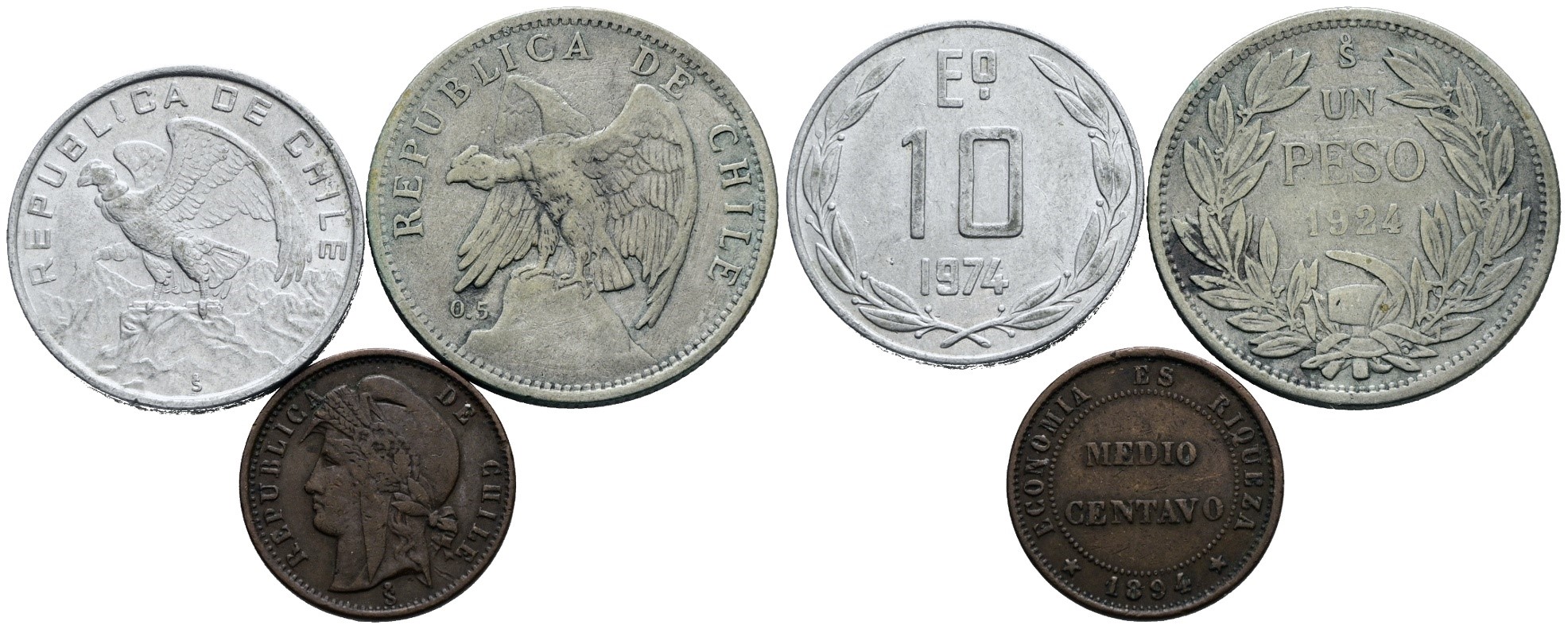 CILE. Lotto di 3 monete. Nominali, date e conservazioni varie.