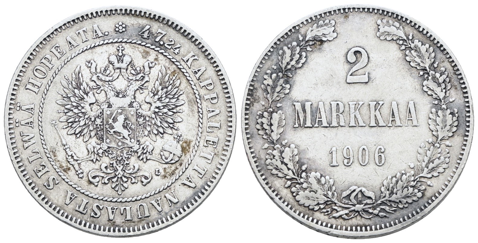 FINLANDIA. Nicola II (1895-1917). 2 markkaa 1906. Ag; 10,37gr; KM 7.2; BB+
