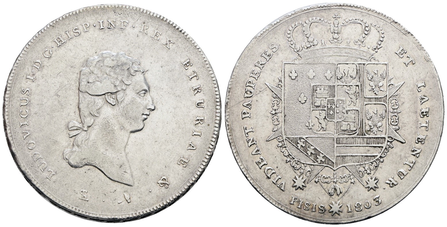FIRENZE. GRANDUCATO DI TOSCANA. Ludovico I di Borbone (1801-1803). Francescone 1803. Ag; 27,5gr; Gig.7a; NC; BB/SPL