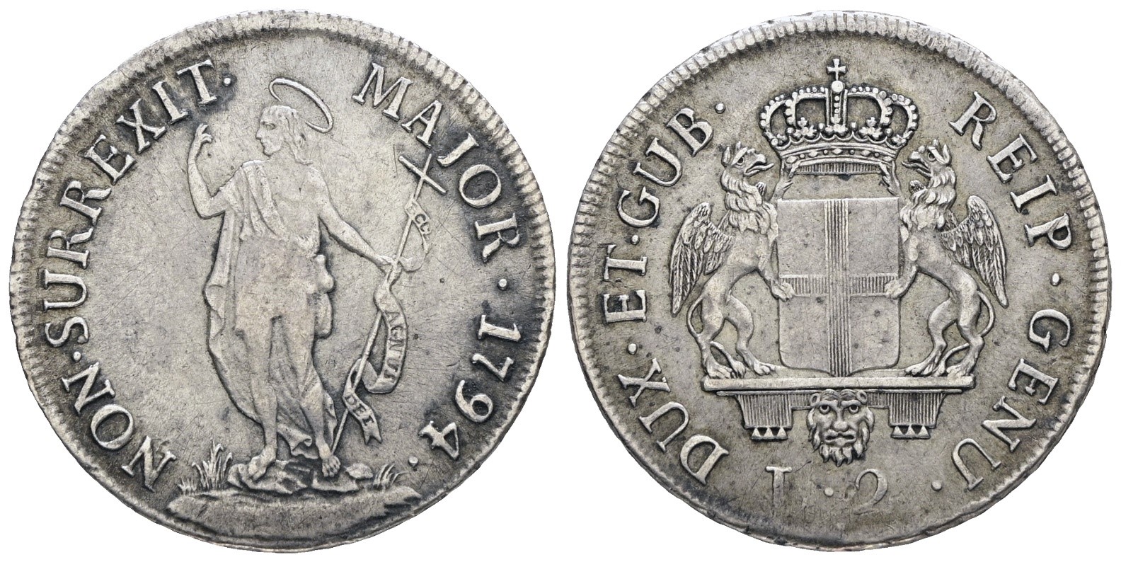 GENOVA. Dogi Biennali (terza fase, 1637-1797). 2 lire 1794 . Ag; 8,3gr; Mir 317/2; Raro; BB/SPL