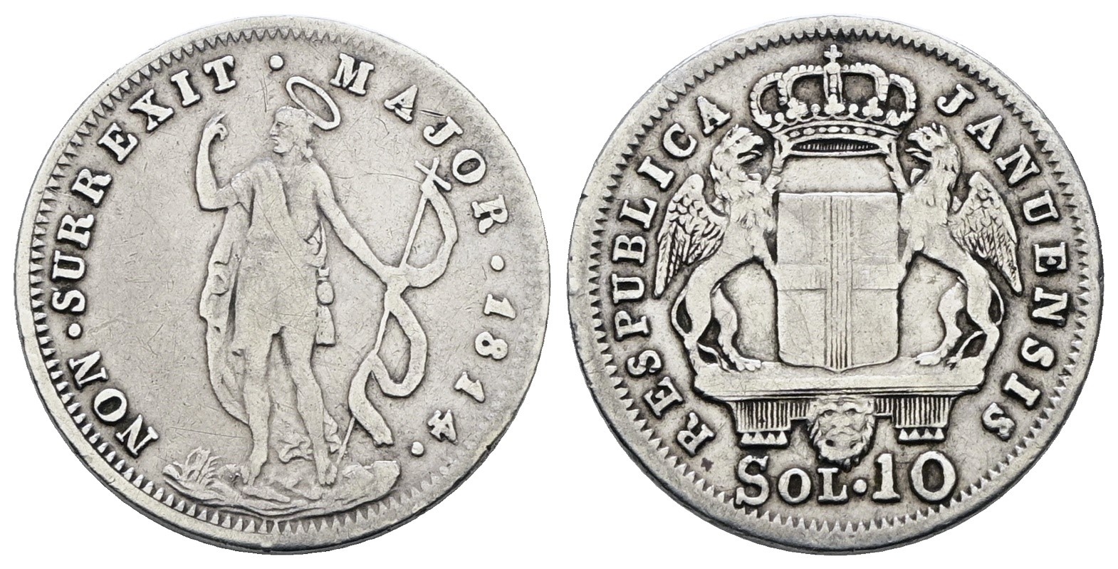 GENOVA. Repubblica Genovese (1814). 10 soldi 1814. Ag; 2,12gr; Mir 392; BB/SPL
