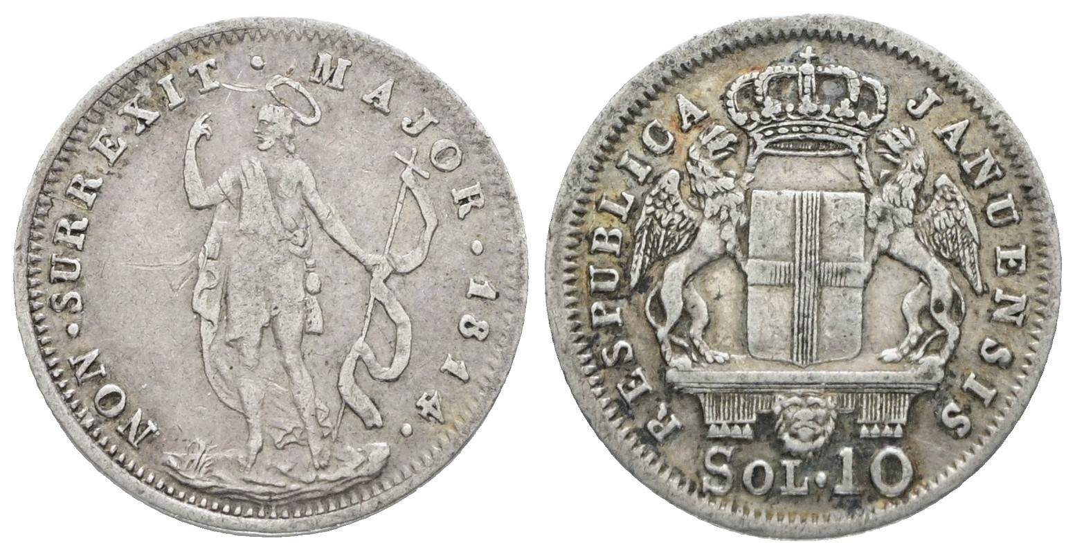 GENOVA. Repubblica Genovese (1814). 10 soldi 1814. Ag; 2,12gr; Mir 392; Q.SPL