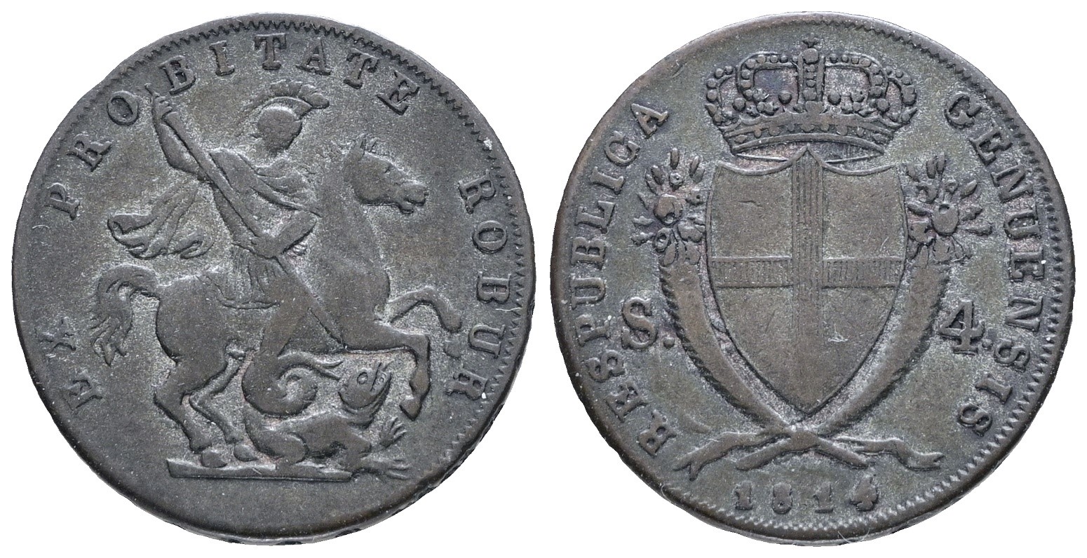 GENOVA. Repubblica Genovese (1814). 4 soldi 1814. Mi; 4gr; Mir 393; BB