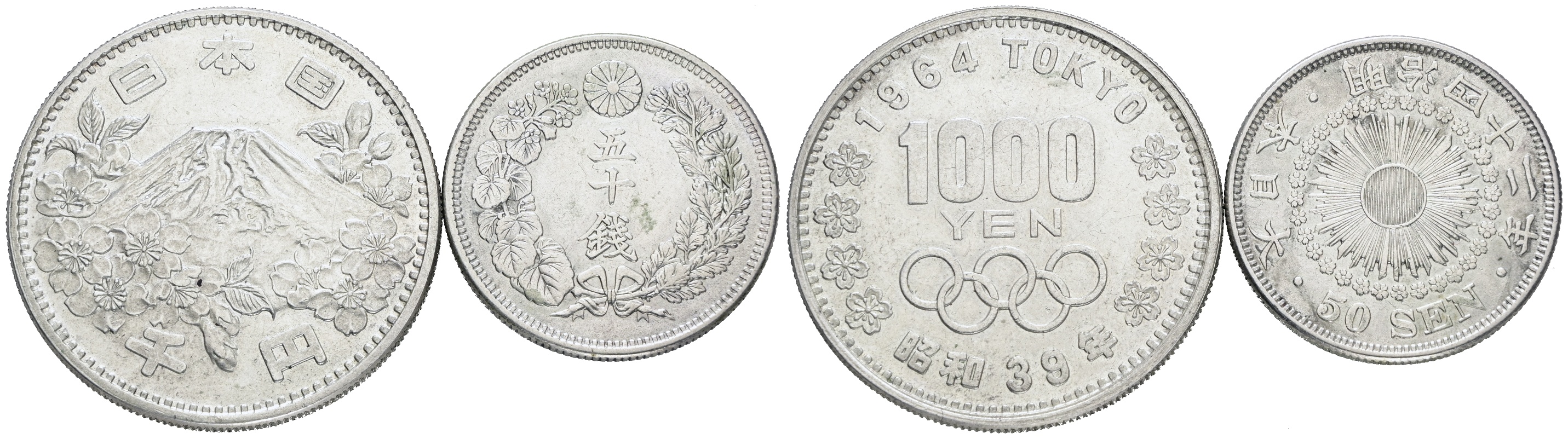 GIAPPONE. LOTTO di 2 monete in argento. Ag; nominali e conservazioni varie.