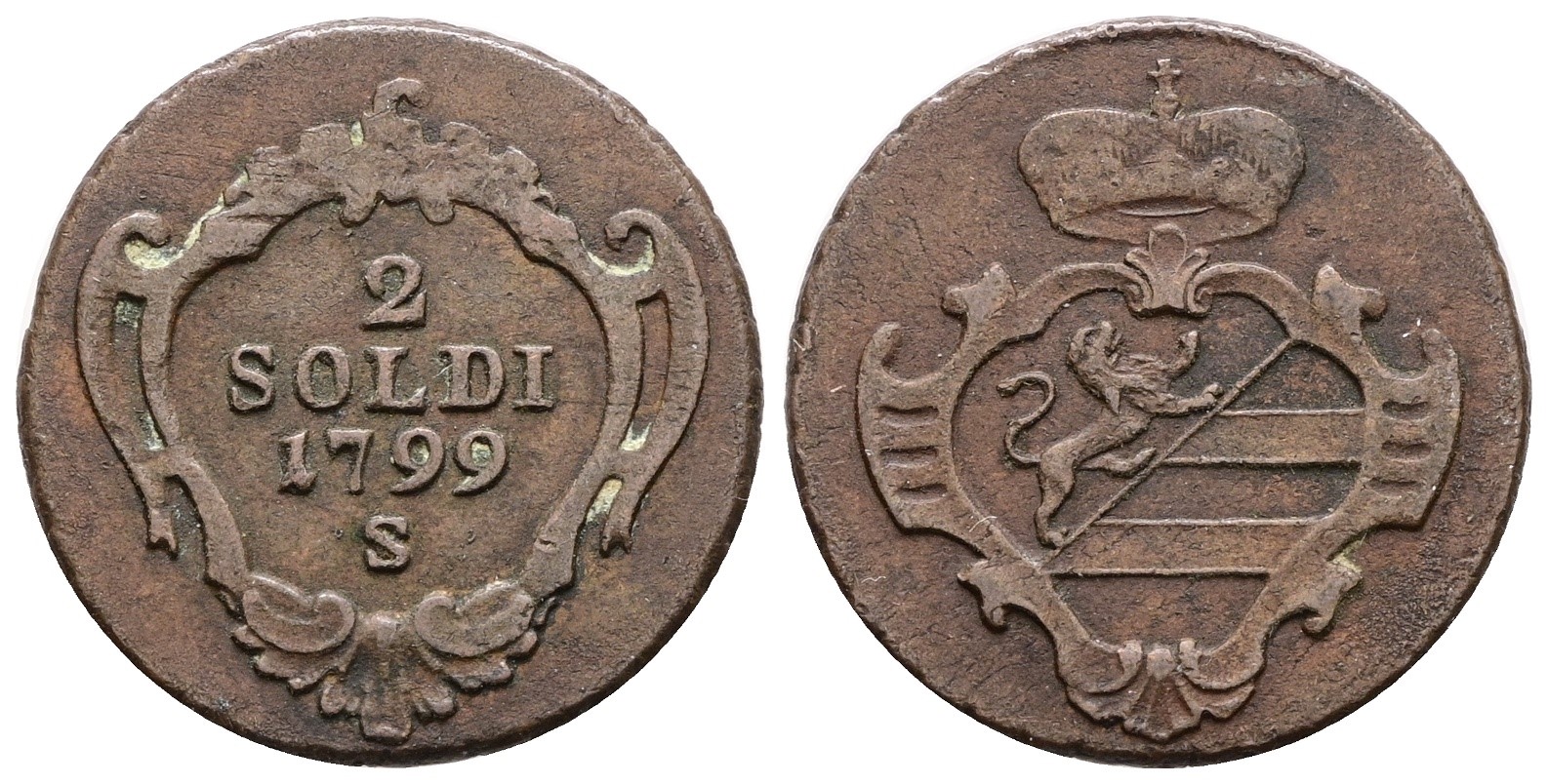 GORIZIA. Francesco II d'Asburgo (1797-1805). 2 soldi 1799 S. Cu; 5,5gr; Gig.8; BB+