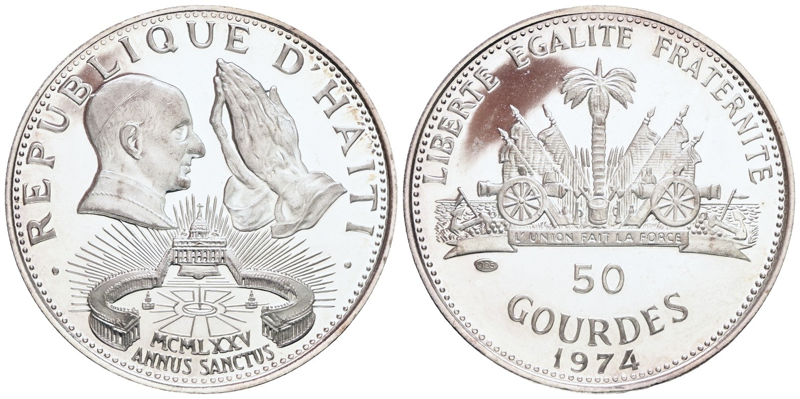 HAITI. 50 gourdes 1974 "Papa Paolo VI". Ag; 16,75gr; KM 123. PROOF