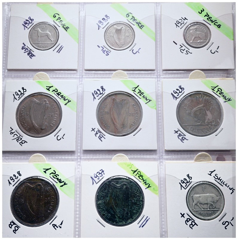 IRLANDA. Lotto di 9 monete. Nominali, metalli, date e conservazioni varie.