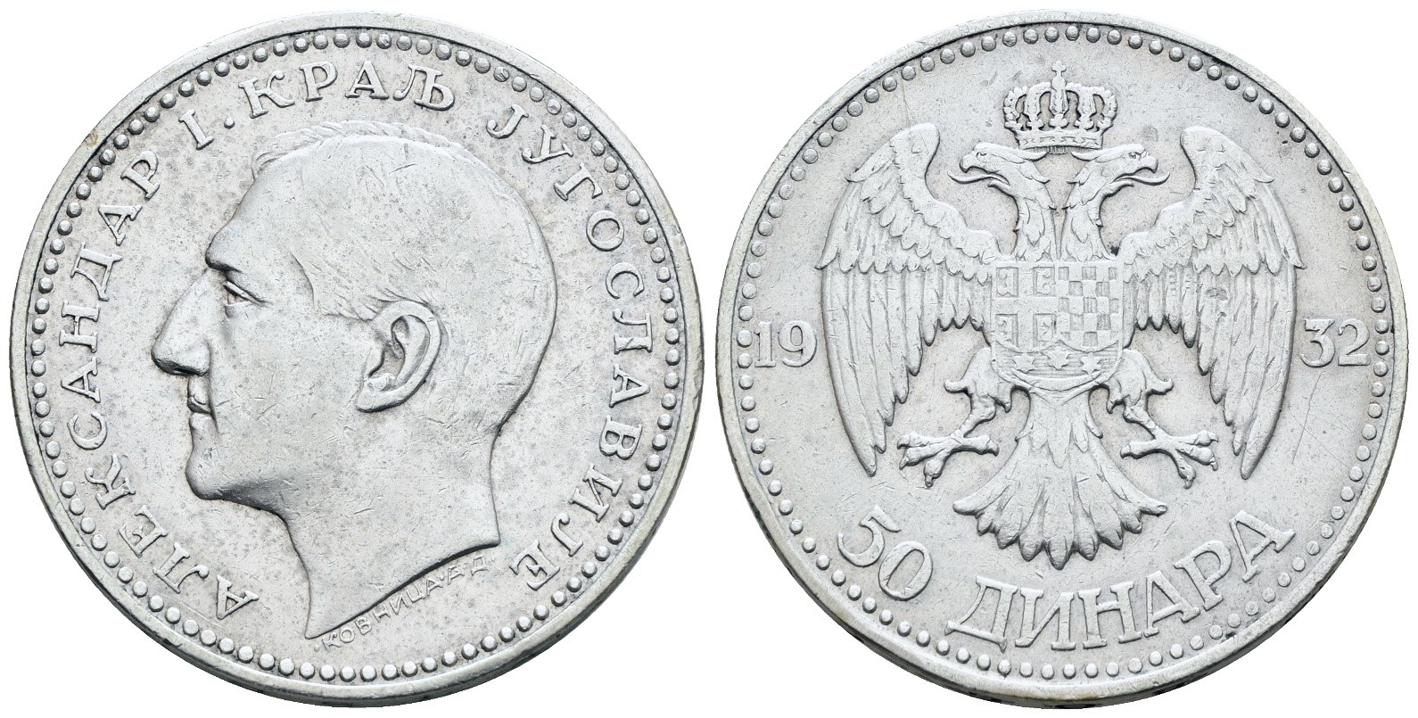 JUGOSLAVIA. Alessandro I (1918-1941). 50 dinari 1932. Ag; 23gr; KM 16; Q.SPL