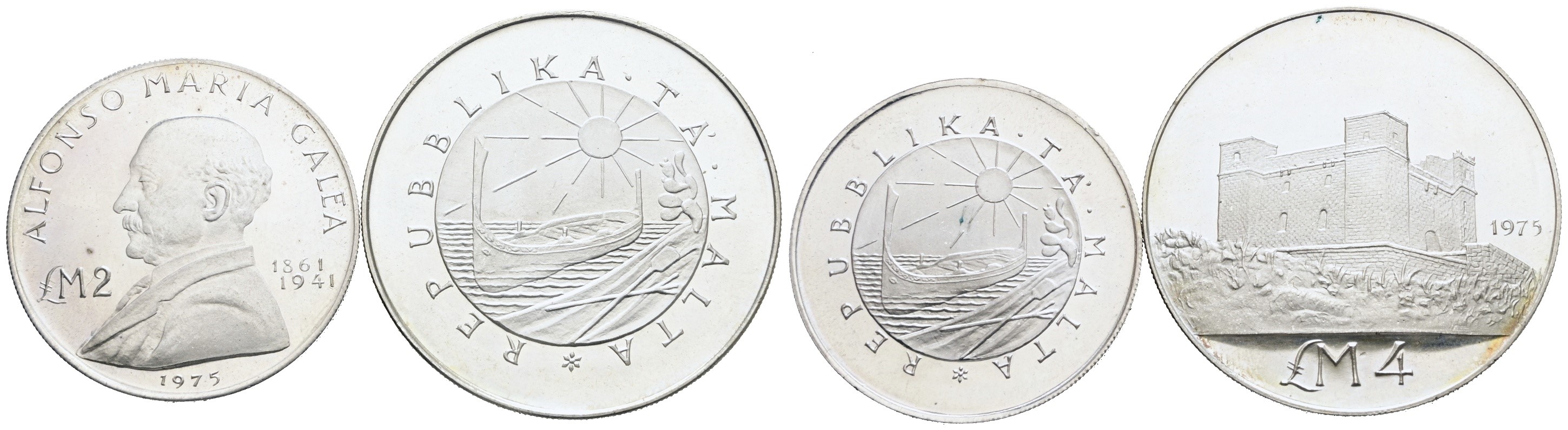 MALTA. Lotto di 2 monete da 2, 4 lire 1975. Ag; FDC