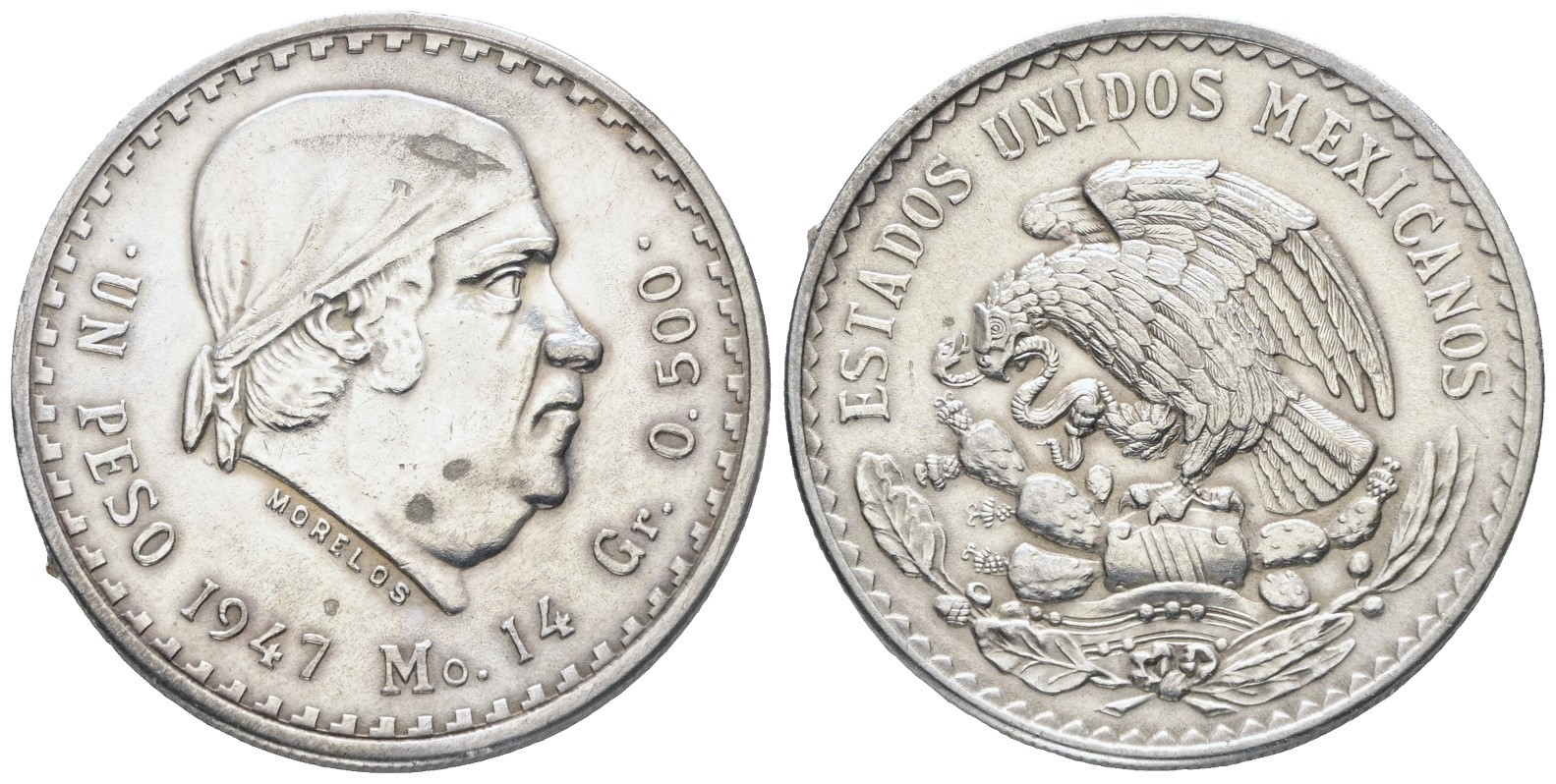 MESSICO. 1 peso 1947. Ag; 14gr; KM 456; Q.SPL