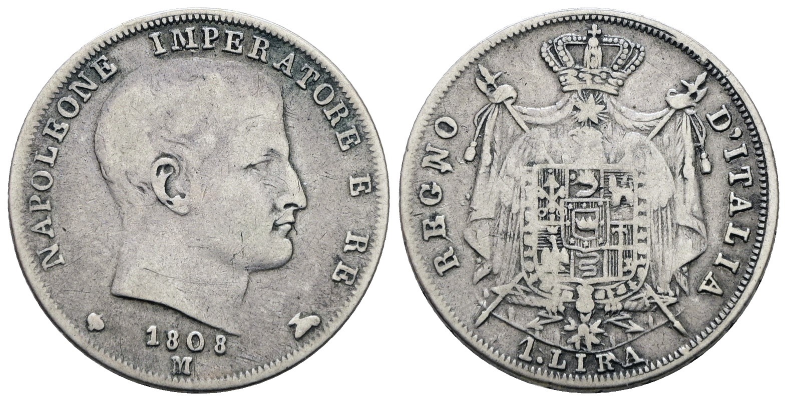 MILANO. Regno d'Italia. Napoleone I (1805-1814). 1 lira 1808. Ag; 5gr; Gig.151; Raro; MB/BB