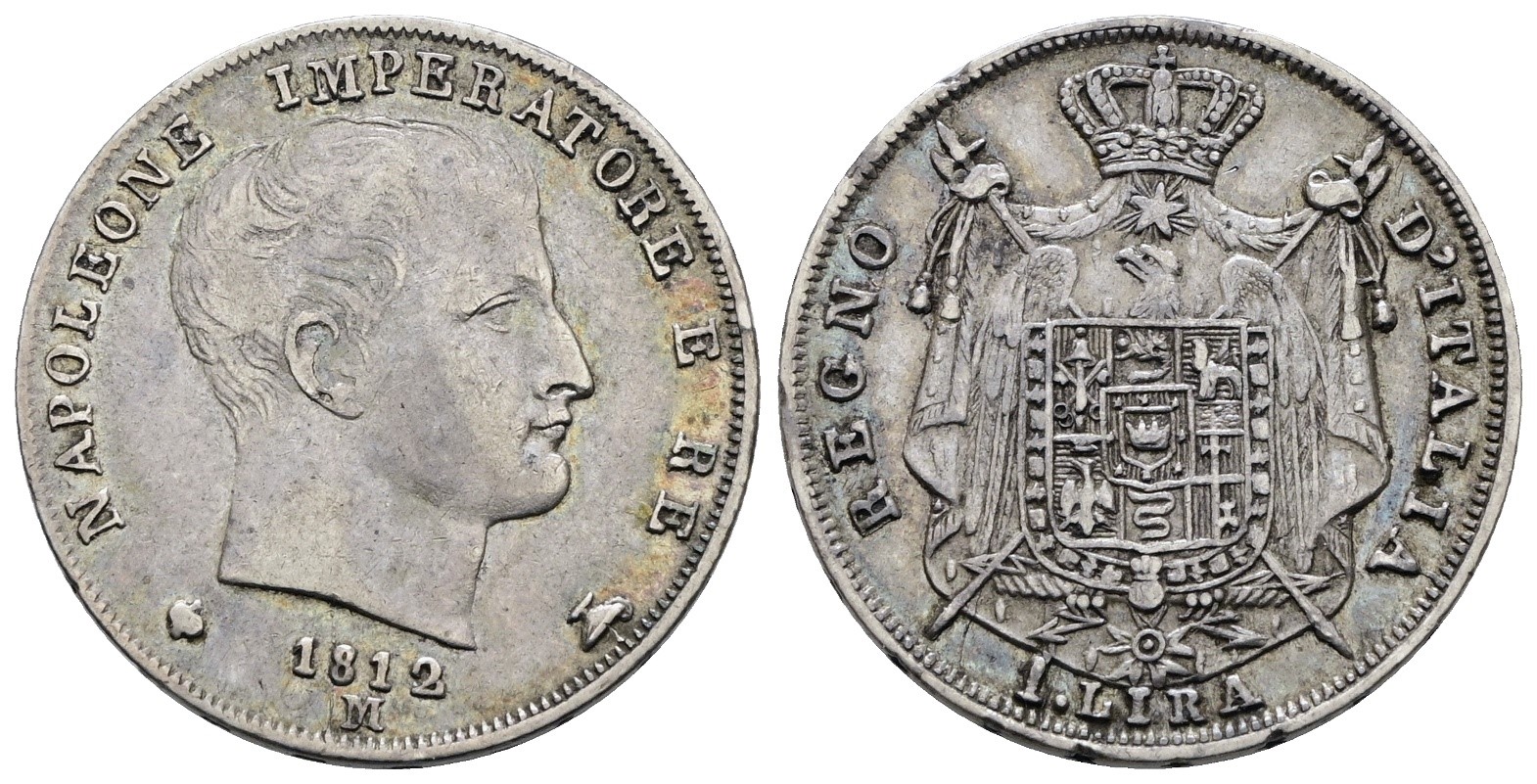 MILANO. Regno d'Italia. Napoleone I (1805-1814). 1 lira 1812 "puntali aguzzi". Ag; 5gr; Gig.159; BB+