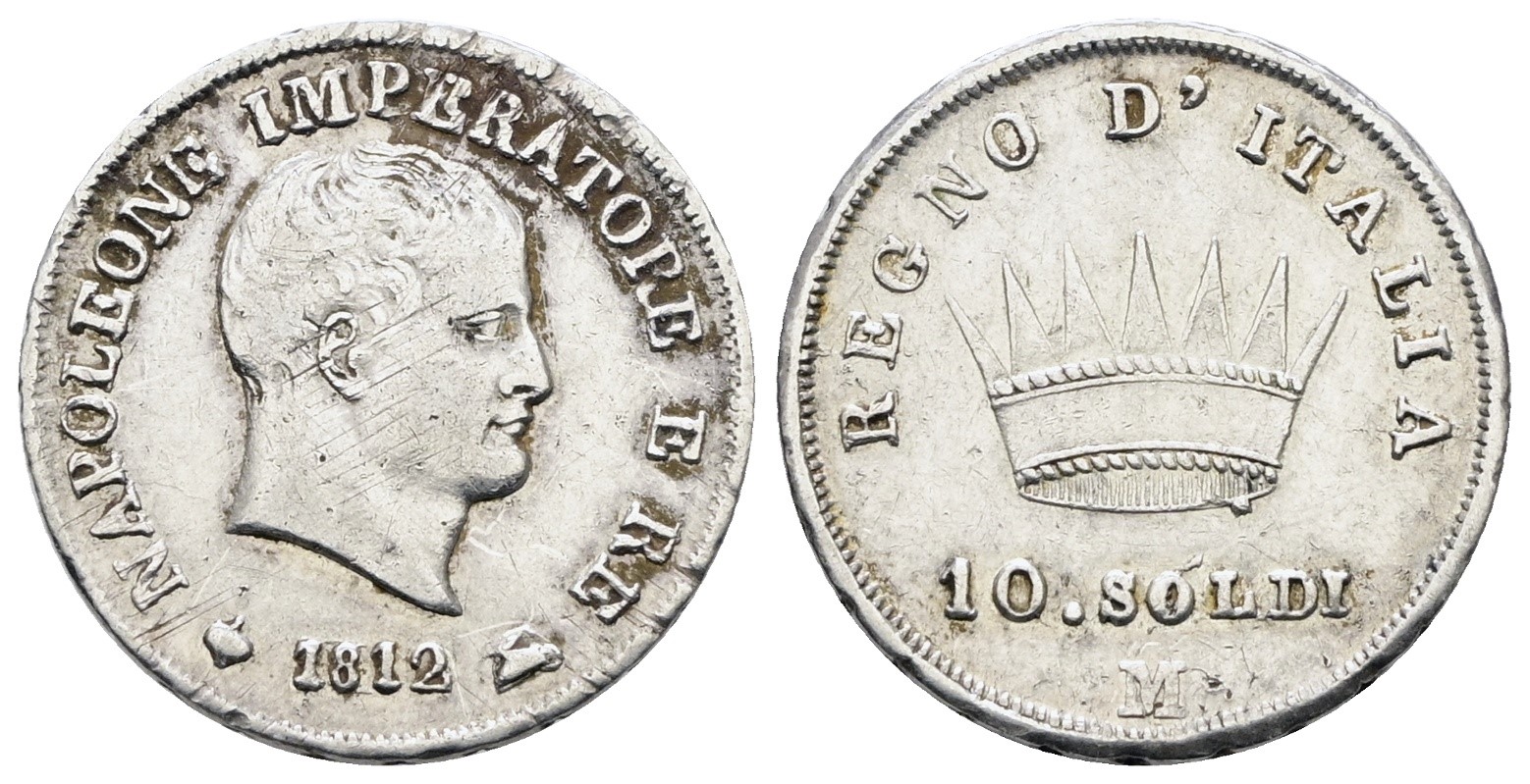 MILANO. Regno d'Italia. Napoleone I (1805-1814). 10 soldi 1812. Ag; 2,5gr; Gig.181; NC; BB+