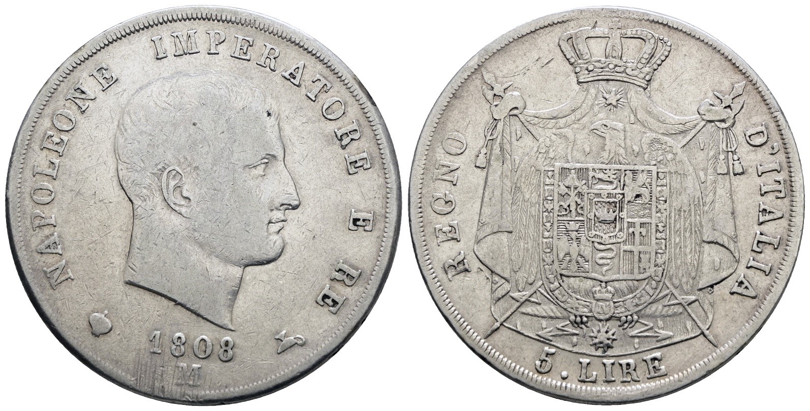 MILANO. Regno d'Italia. Napoleone I (1805-1814). 5 lire 1808. Ag; 25gr; Gig.103; BB