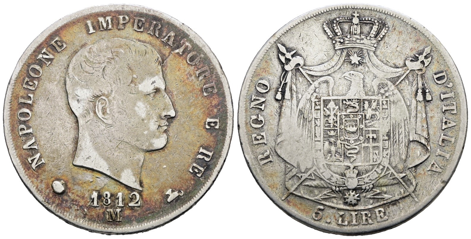 MILANO. Regno d'Italia. Napoleone I (1805-1814). 5 lire 1812 "puntali aguzzi". Ag; 25gr; Gig.112; MB/BB