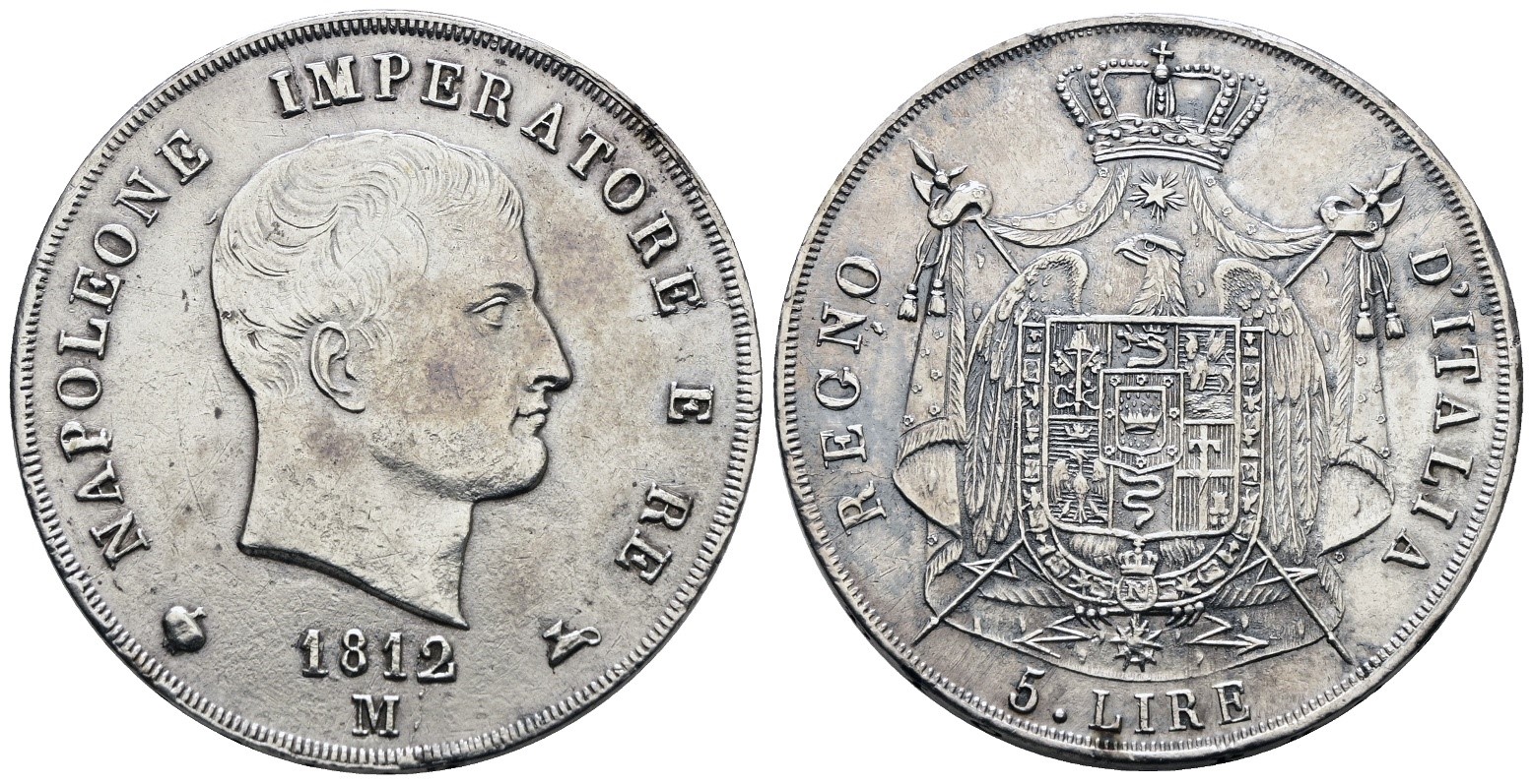 MILANO. Regno d'Italia. Napoleone I (1805-1814). 5 lire 1812 "puntali aguzzi". Ag; 25gr; Gig.112; BB