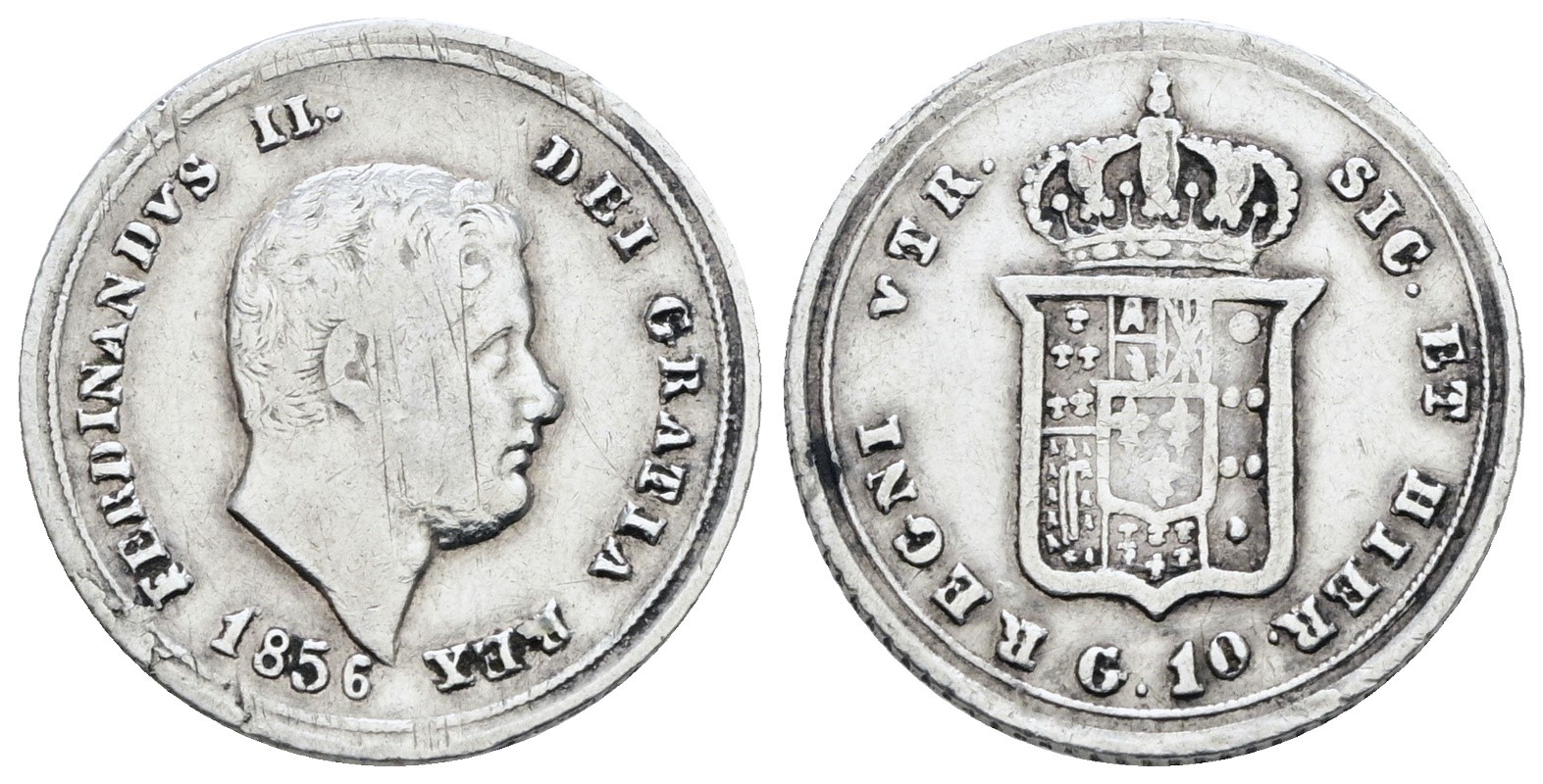 NAPOLI. REGNO DELLE DUE SICILIE. Ferdinando II di Borbone (1830-1859). Carlino 10 grana 1856. Ag; 2,29gr; Gig.170; NC; BB