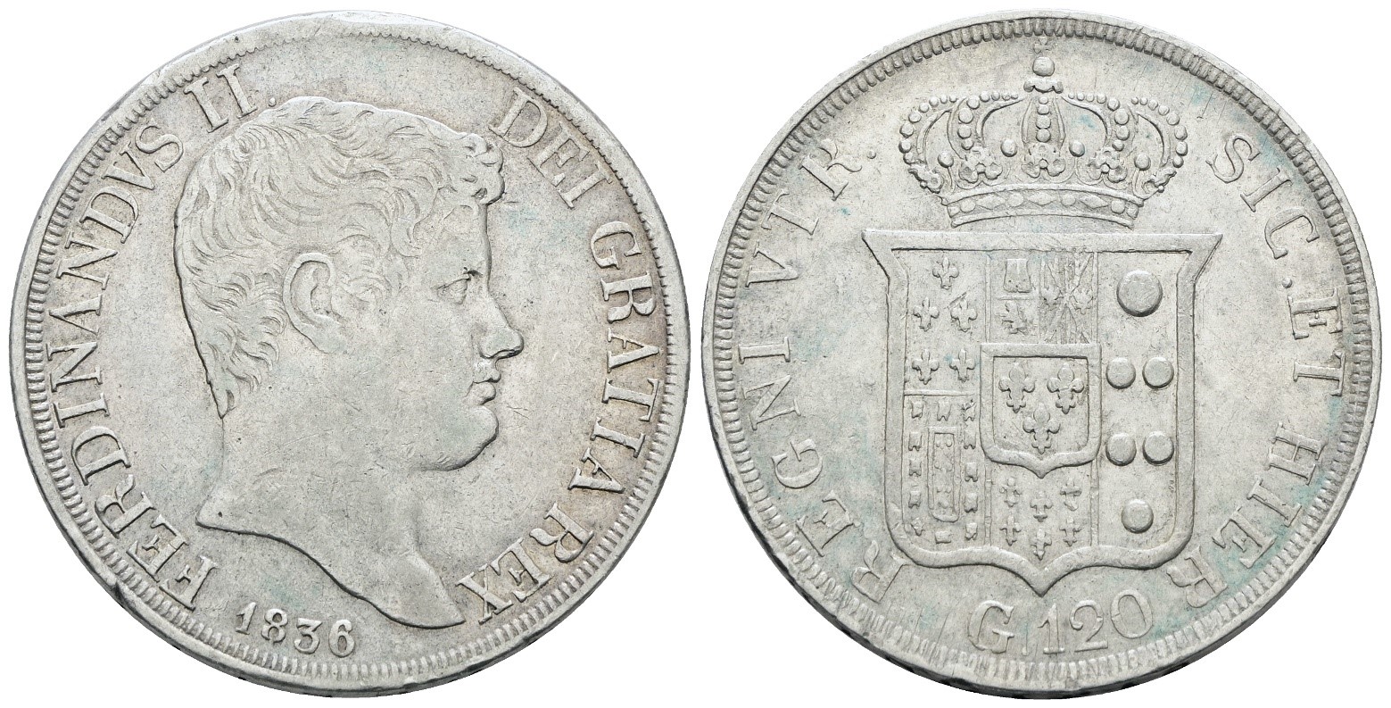 NAPOLI. REGNO DELLE DUE SICILIE. Ferdinando II di Borbone (1830-1859). Piastra 120 grana 1836. Ag; 27,5gr; Gig.61; BB+