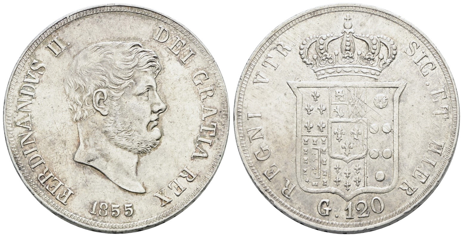 NAPOLI. REGNO DELLE DUE SICILIE. Ferdinando II di Borbone (1830-1859). Piastra 120 grana 1854. Ag; 27,5gr; Gig.86; BB/SPL
