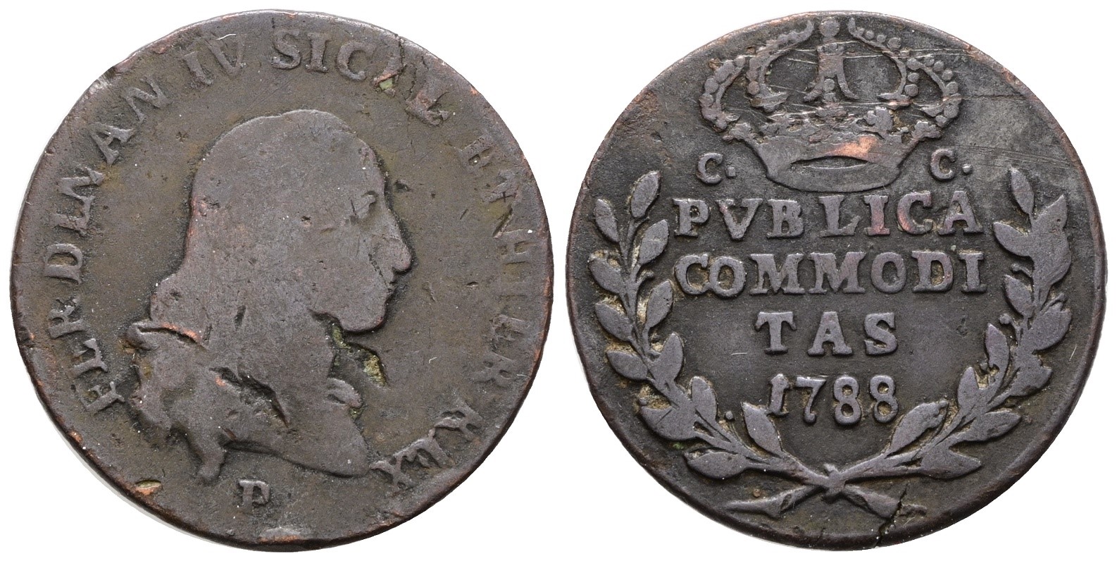 NAPOLI. REGNO DI NAPOLI. Ferdinando IV di Borbone (1759-1799 I per.). Publica 3 tornesi 1788. Cu; 9gr; Gig.129; RR; MB+