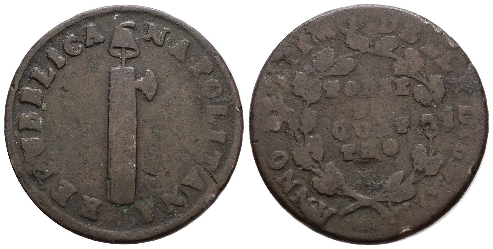 NAPOLI. REPUBBLICA NAPOLETANA (1799). 4 tornesi 1799. Cu; 5gr; Gig.12; NC; MB+