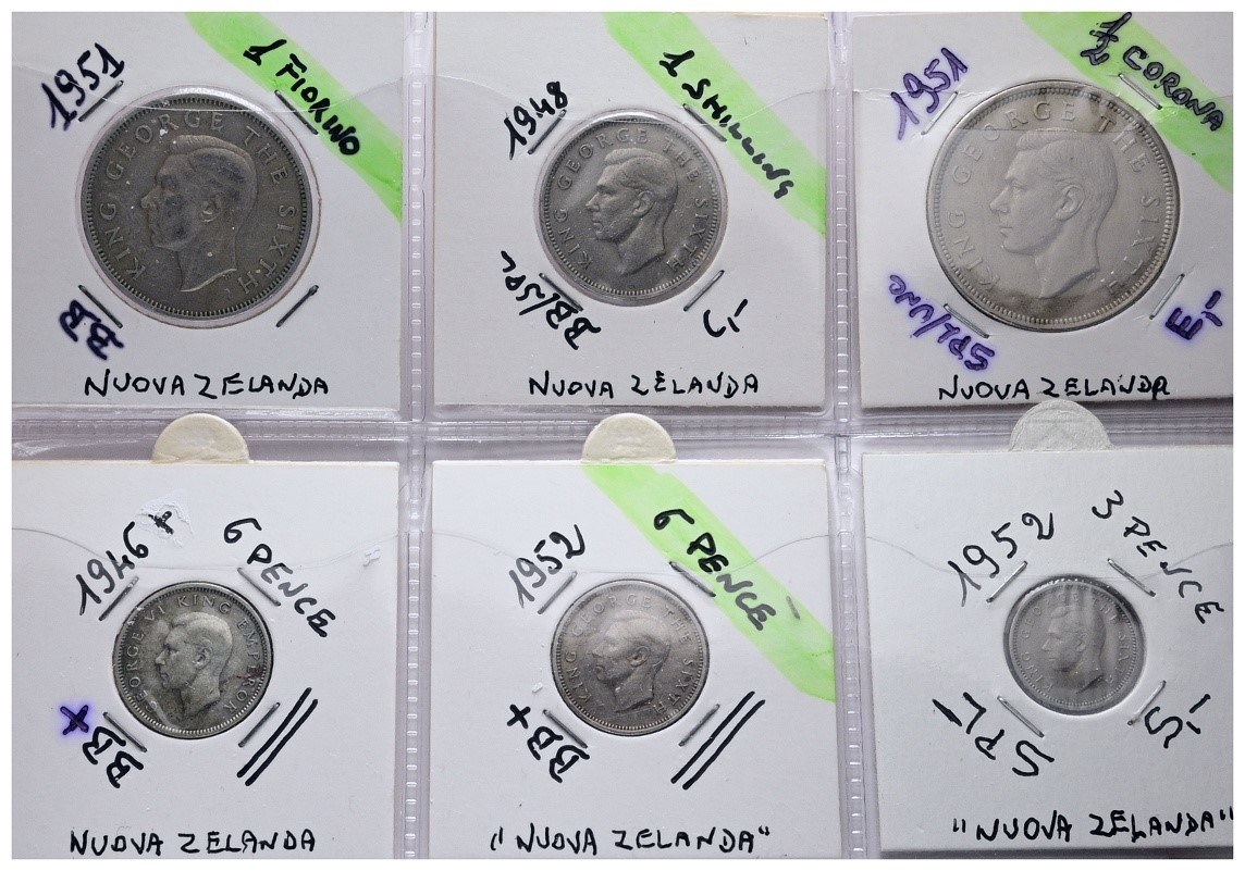 NUOVA ZELANDA. Giorgio VI (1936-1952). Lotto di 6 monete. Metalli, nominali, date e conservazioni varie.