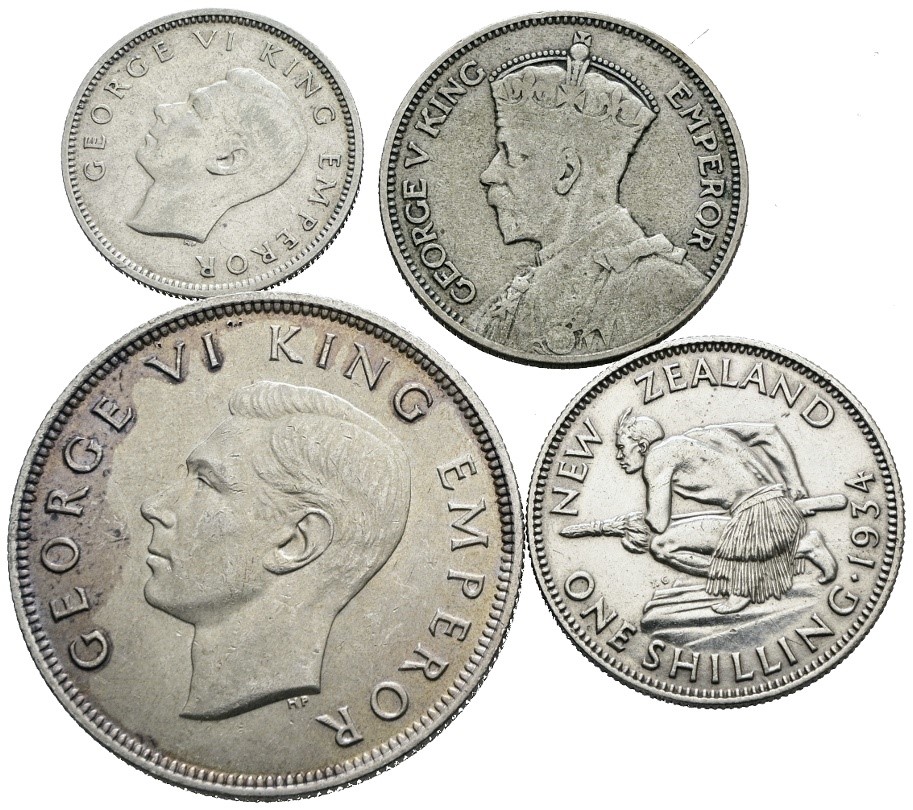 NUOVA ZELANDA. Lotto di 4 monete. Ag; Nominali, date e conservazioni varie.