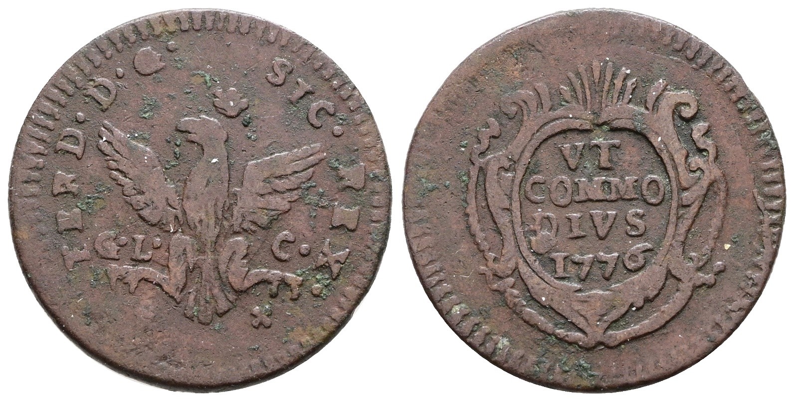 PALERMO. REGNO DI SICILIA. Ferdinando III di Borbone (1759-1816). Grano 1776. Cu; 4,4gr; Gig.111; Raro; BB
