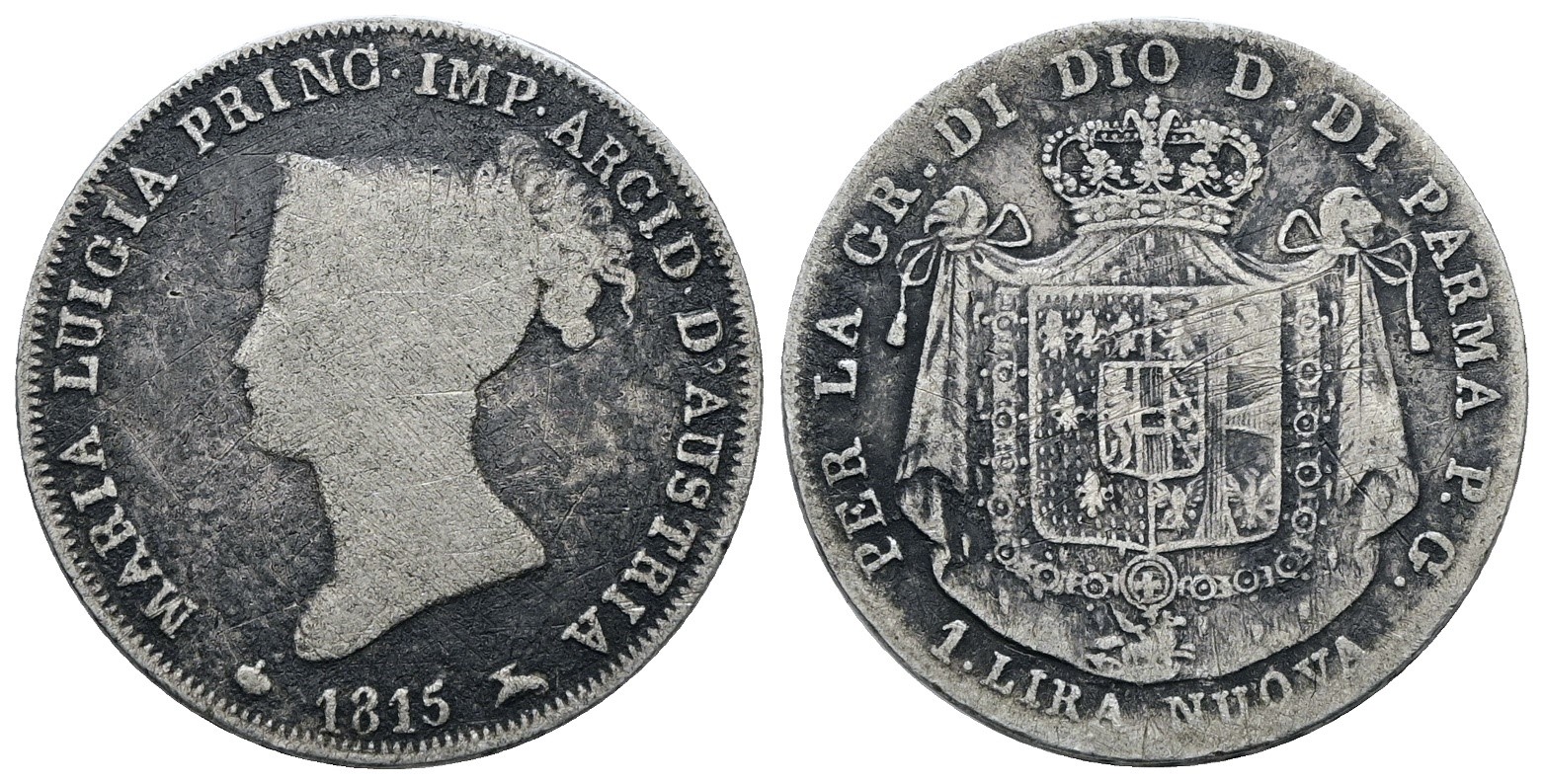 PARMA. Maria Luigia d'Austria (1815-1847). 1 lira 1815. Ag; 5gr; Gig. 9; Raro; MB/BB