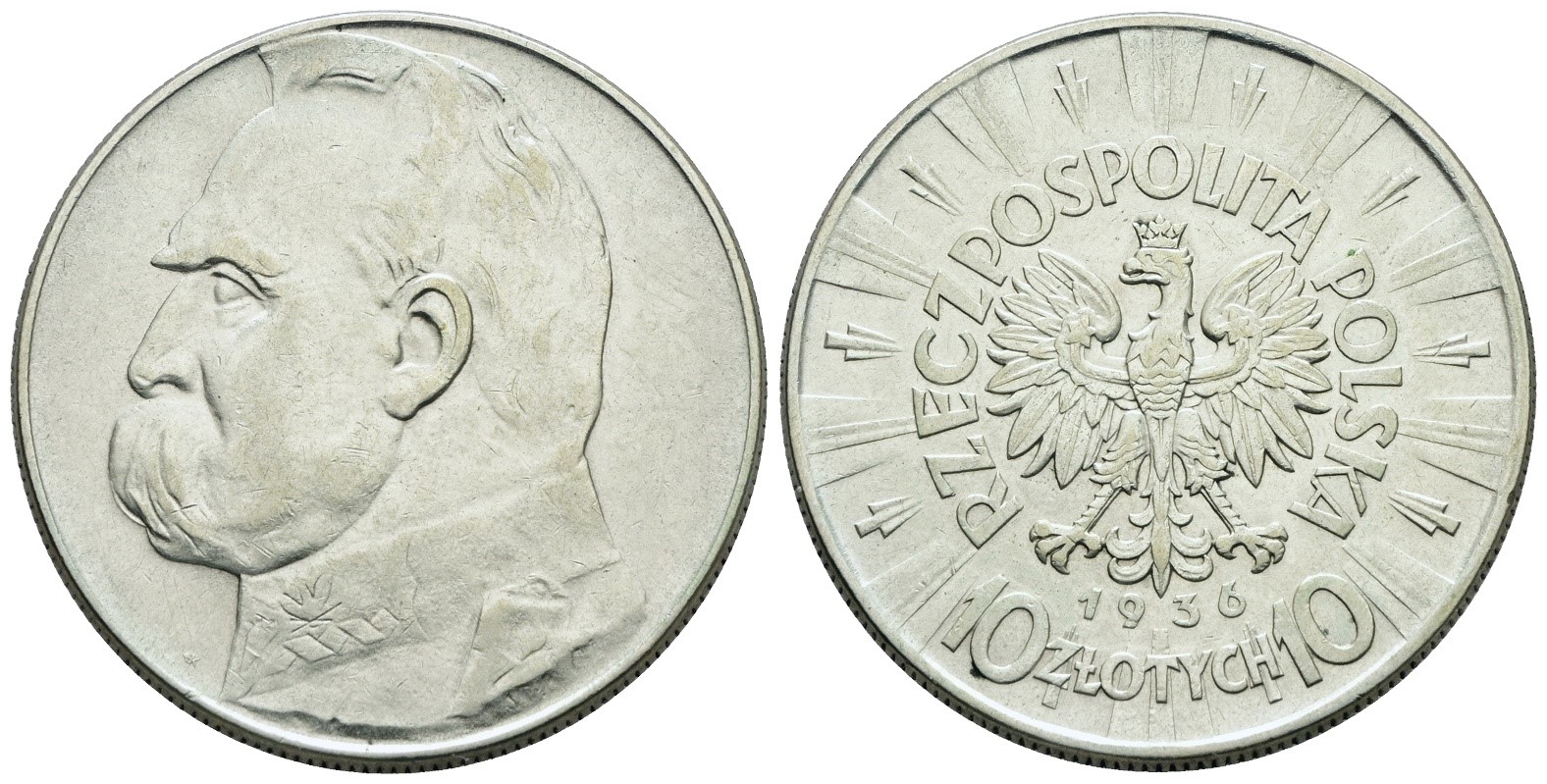 POLONIA. 10 zlotych 1936. Ag; 22gr; C 29; SPL