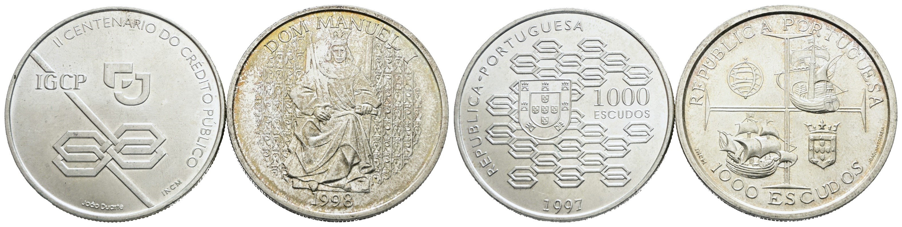 PORTOGALLO. Lotto di 2 monete da 1000 escudos 1997, 1998. Ag; FDC