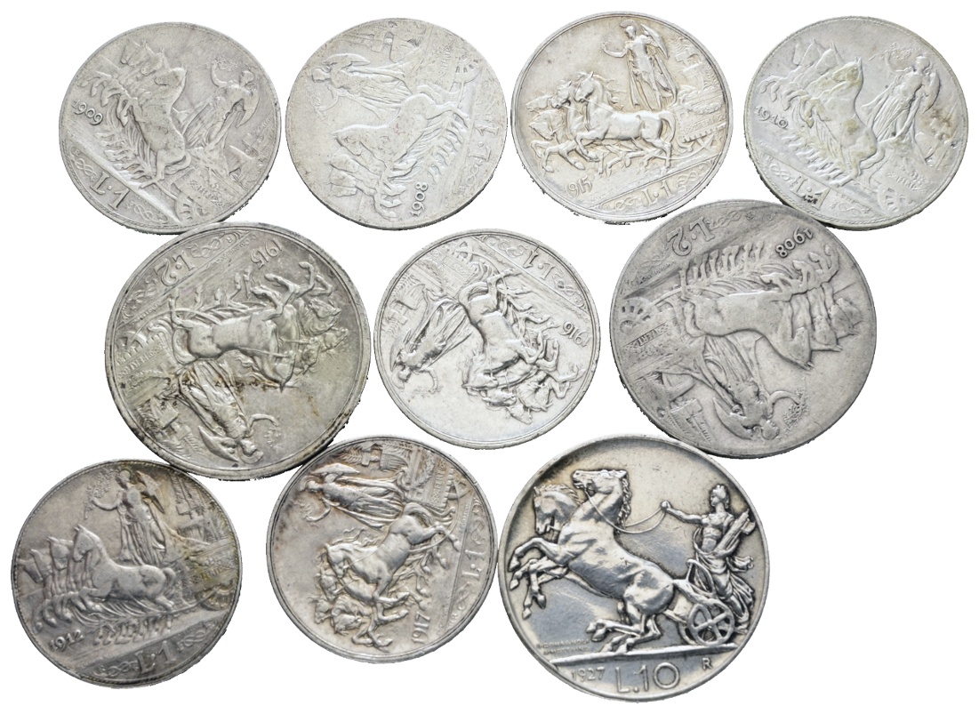 REGNO D'ITALIA. Vittorio Emanuele III (1900-1943). Lotto di 10 monete in argento. Ag; Varie conservazioni.
