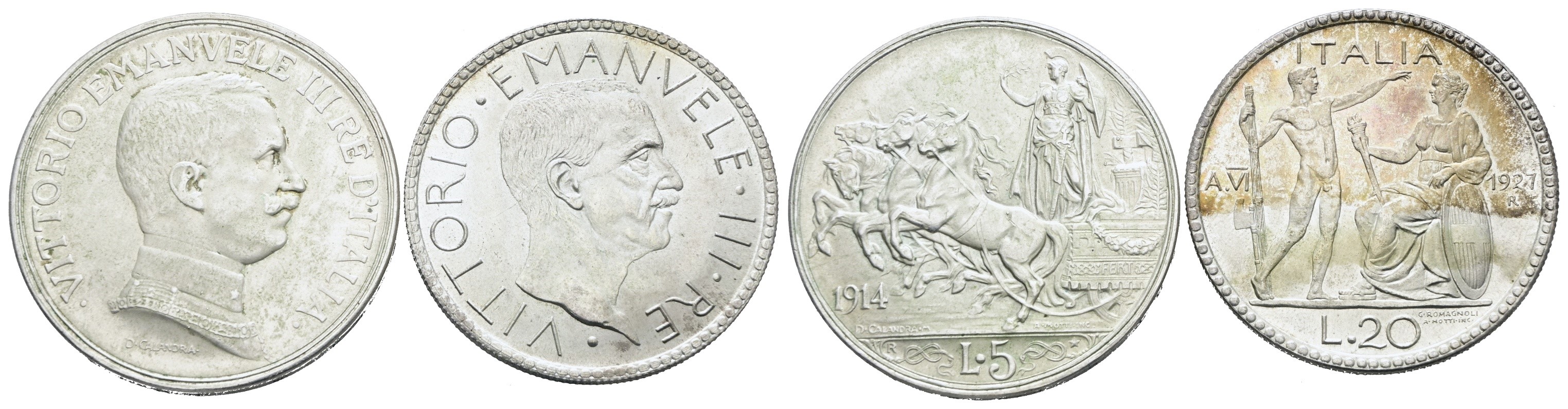 REGNO D'ITALIA. Vittorio Emanuele III (1900-1943). Lotto di 2 falsi da studio: 5 lire 1914; 20 lire 1928 Littore. Cu